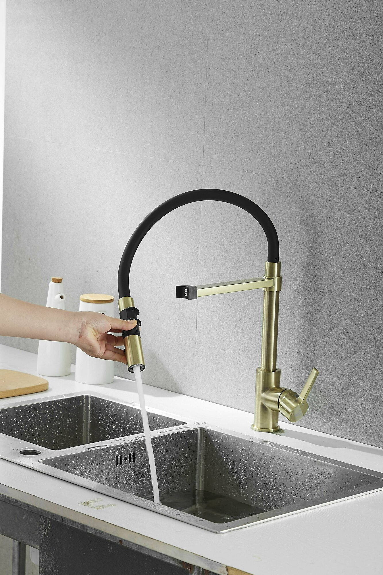 Смеситель для кухни с гибким изливом ROSE R133E, латунь, цвет золото