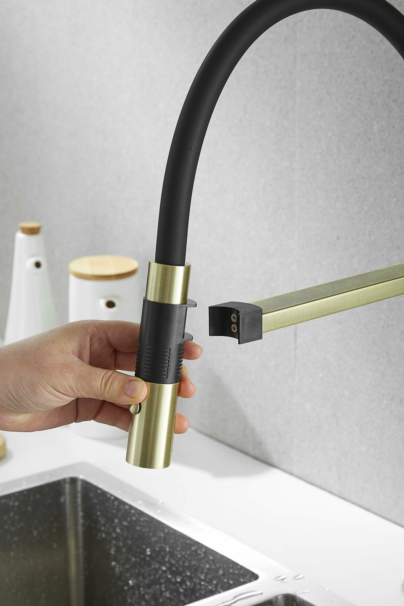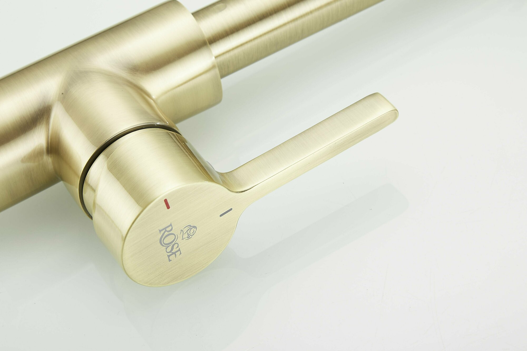 Смеситель для кухни с гибким изливом и подключением фильтра для воды Rose R558E, золото