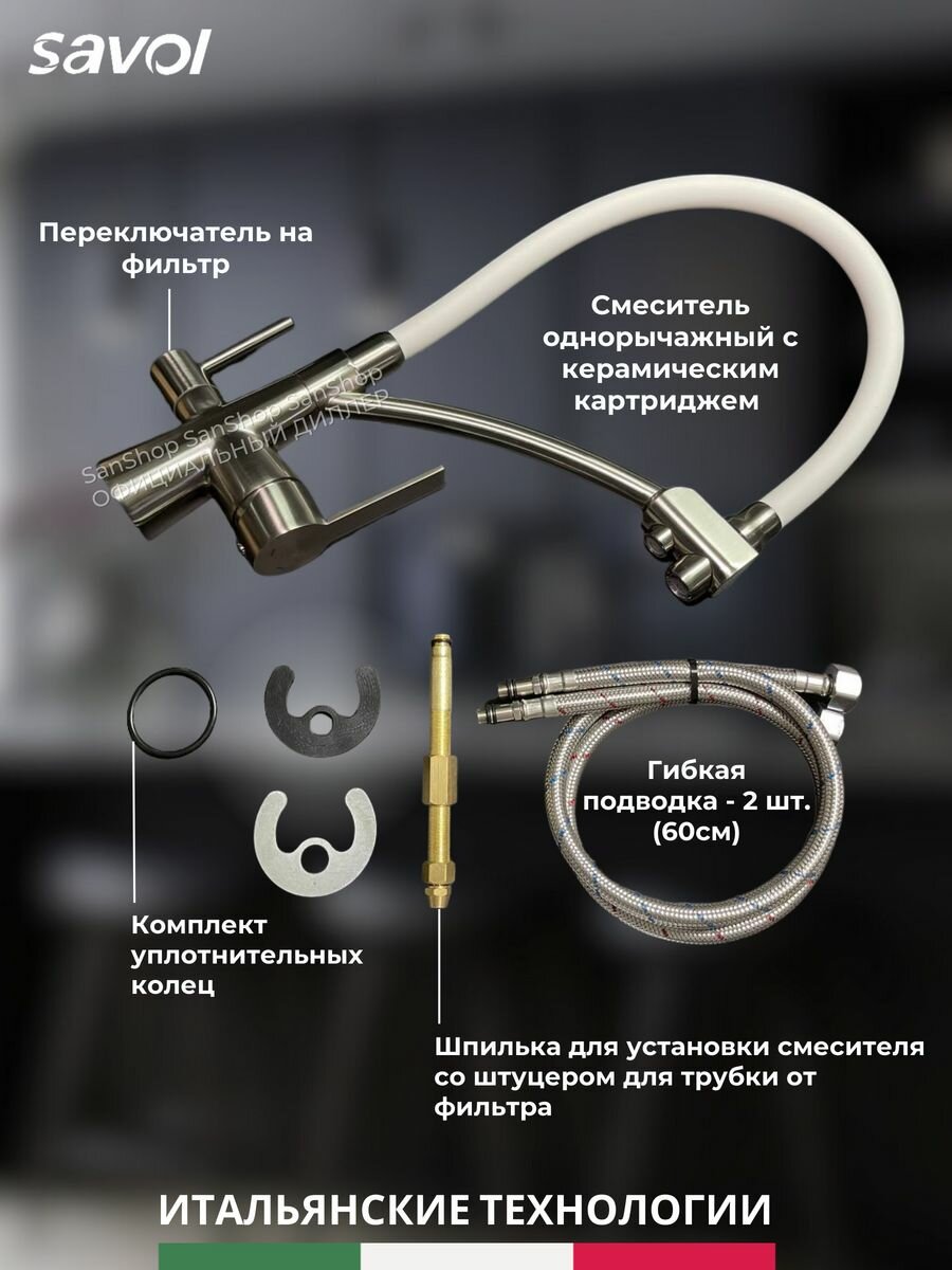 Смеситель Savol S-L1805-02 для кухни, с подключением к фильтру, цвет хром / белый