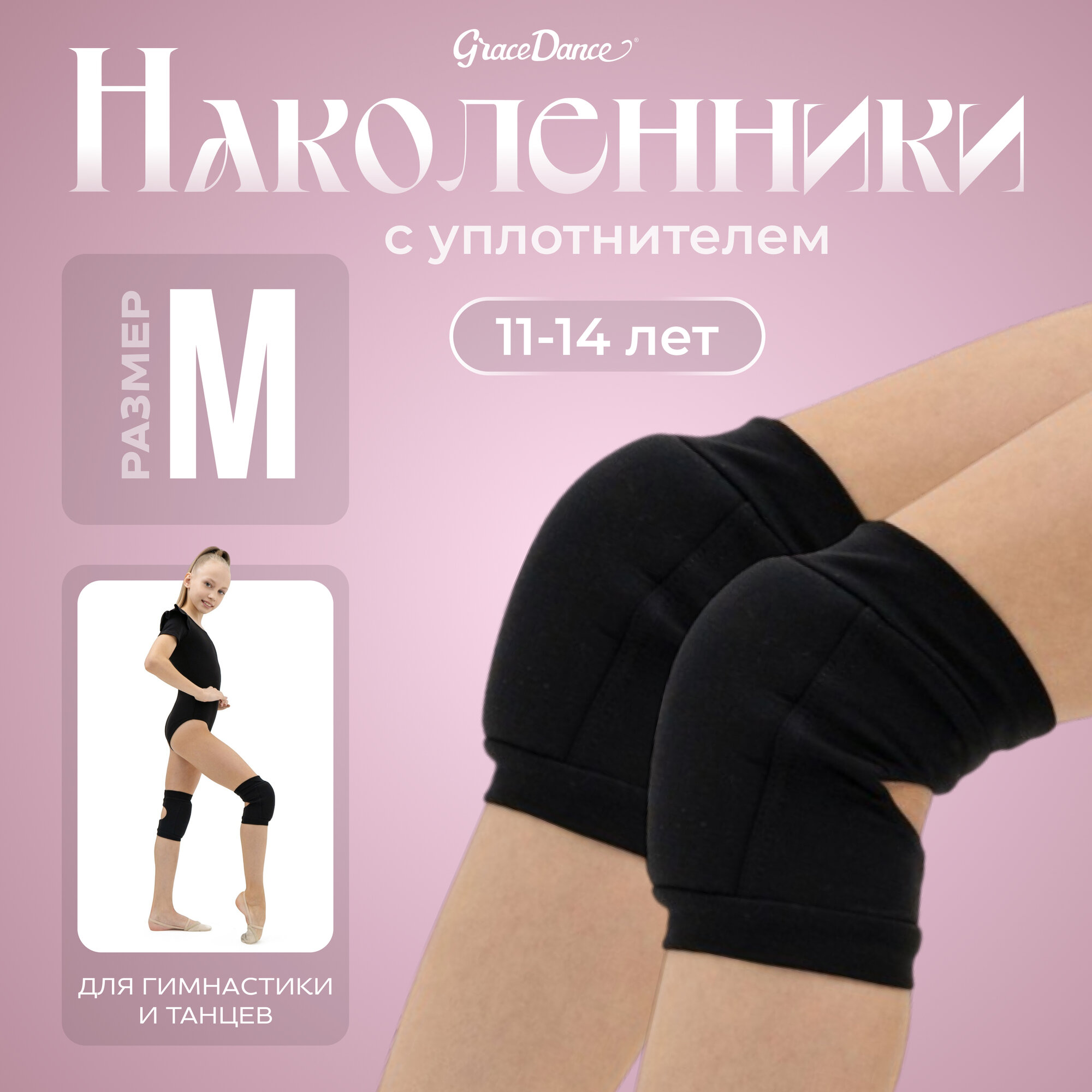 Наколенники для гимнастики и танцев Grace Dance, с уплотнителем, р. M, 11-14 лет, цвет чёрный