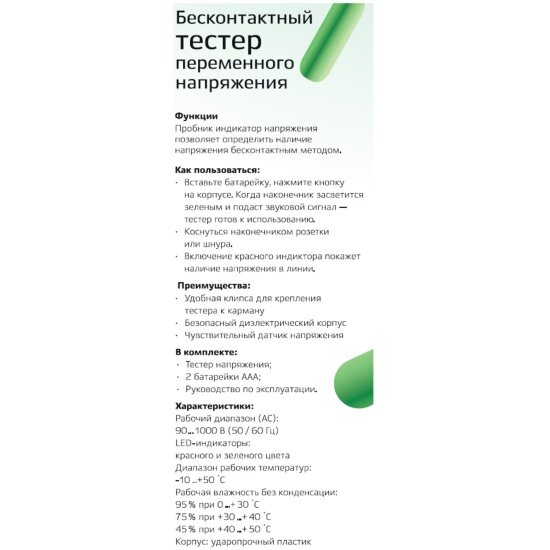 Тестер-индикатор Duwi напряжения в сети переменного тока, бесконтактный, до 1000В, 26008 0