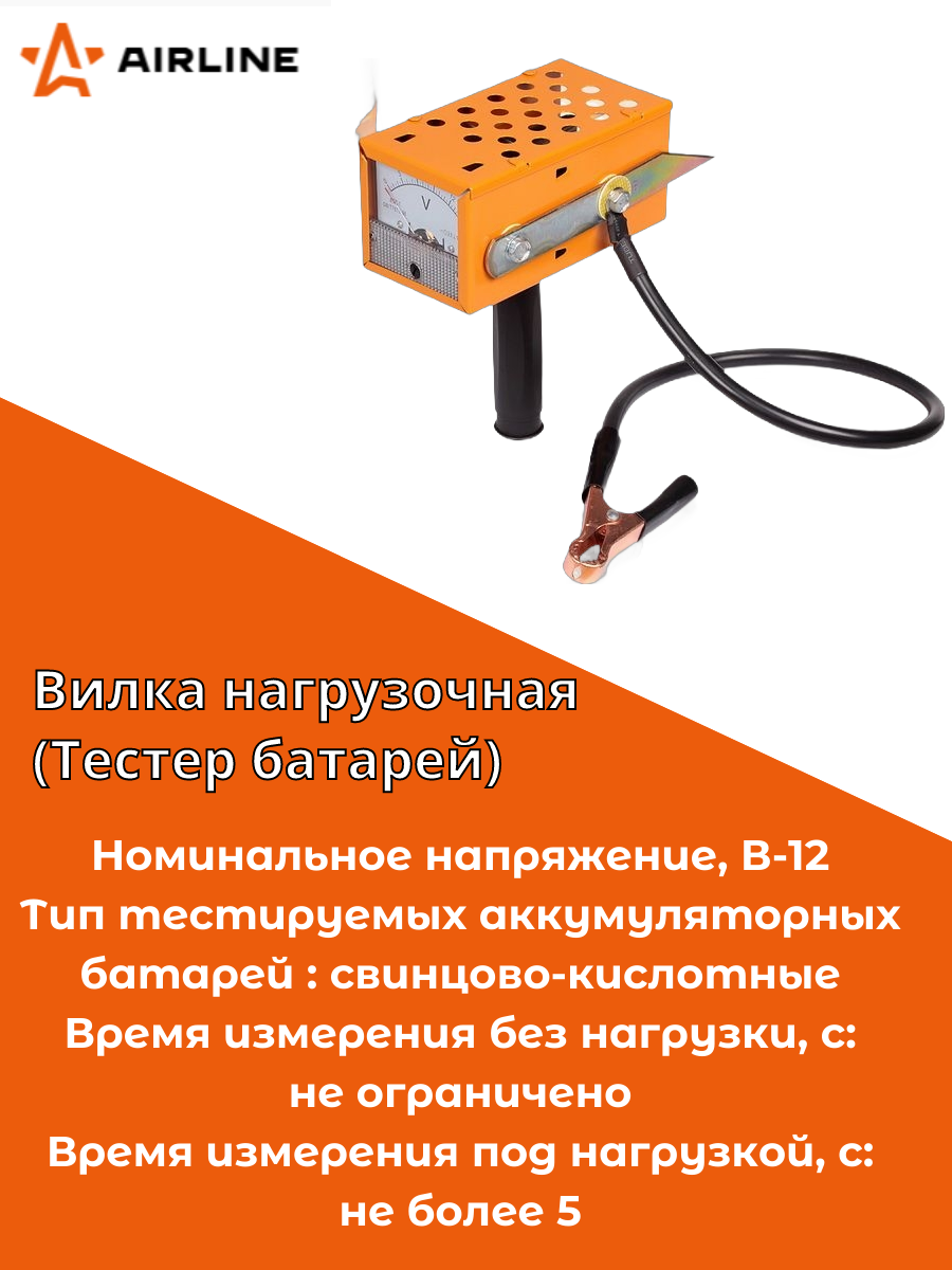 Вилка Нагрузочная Измерительная, До 190 Ач, 12в AIRLINE арт. ABT1202