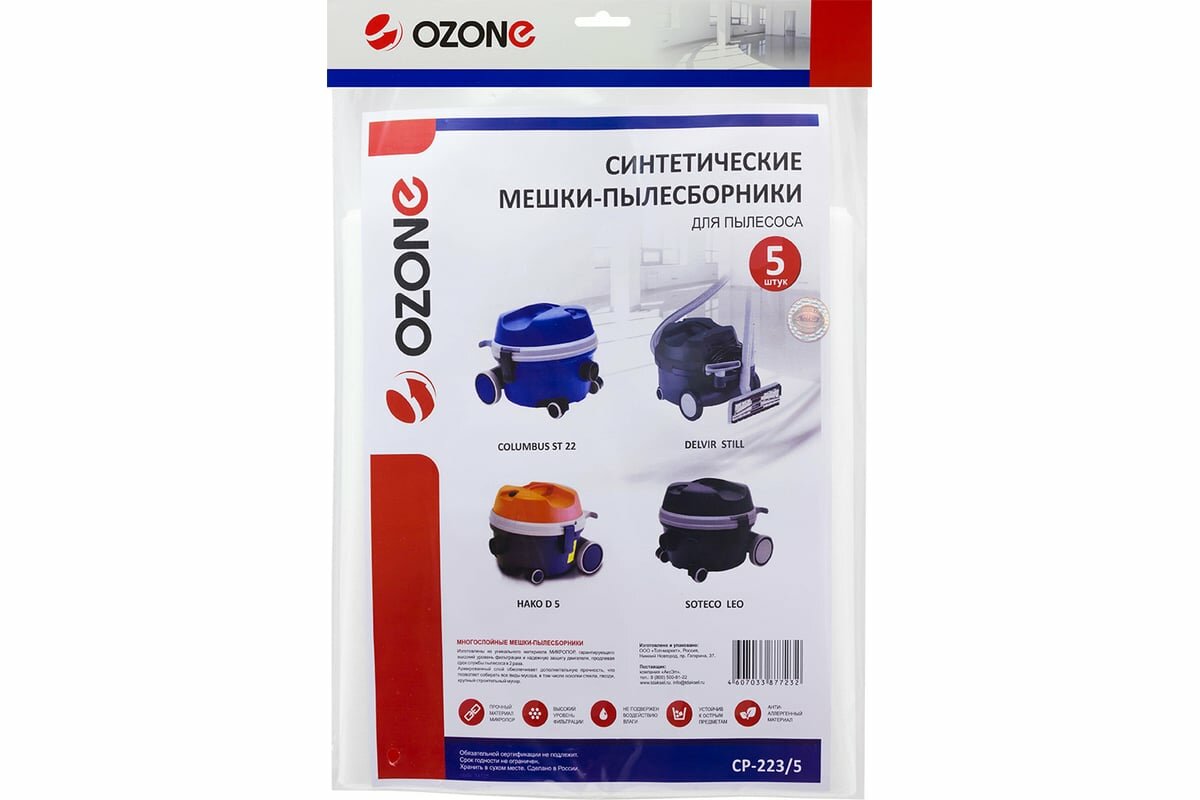 Купить Ozone CP-223/5 Мешки для пылесоса COLUMBUS, синтетические многослойные, 5 шт.