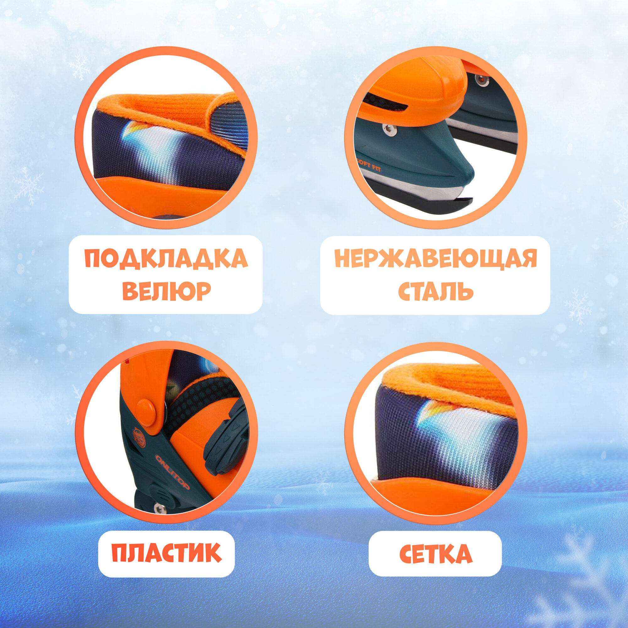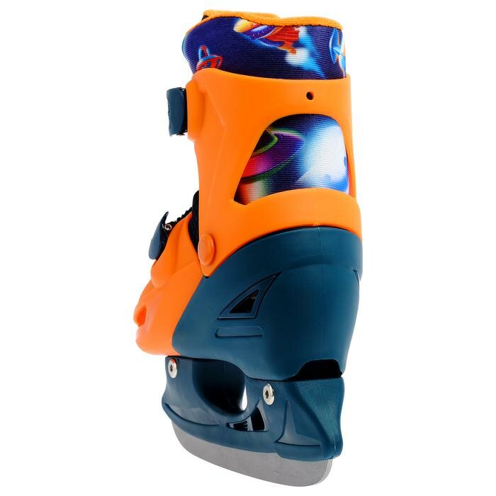 Коньки ледовые детские раздвижные «Космос» 223E, текстиль, пластик, размер 30-33, цвет оранжевый, серый