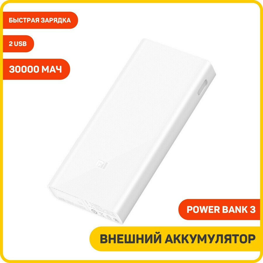 Портативный аккумулятор Xiaomi Mi Power Bank 3 30000, белый