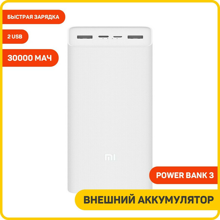 Powerbank Xiaomi 3 30000mAh 2USB/1C 3.6A (VXN4307CN/PB3018ZM) белый