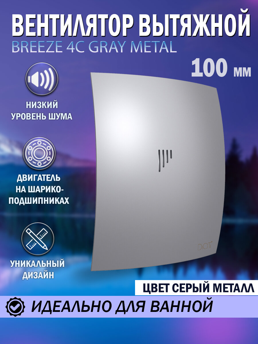 Купить Вентилятор с обратным клапаном вытяжной DiCiTi BREEZE 4C Gray metal, 100 мм, серый металлик