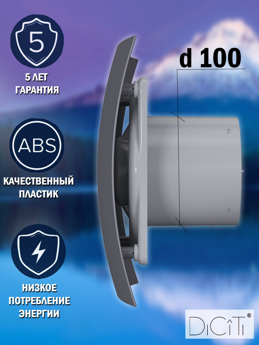 Купить Вентилятор вытяжной DiCiTi BREEZE 4C Dark gray metal, 100 мм обратный клапан, темно-серый металлик