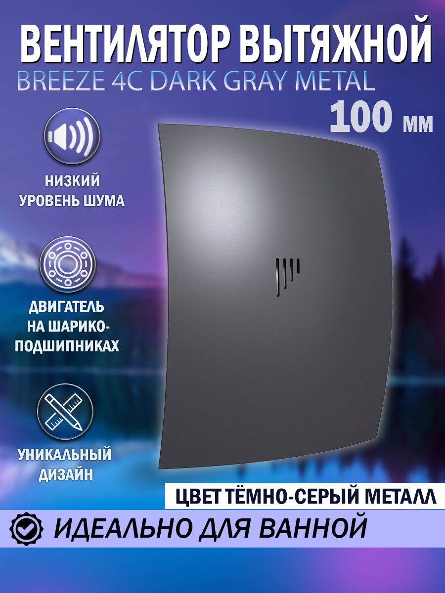 Breeze 4C dark gray metal вентилятор вытяжной бесшумный c обратным клапаном на шарикоподшипниках, тёмно-серый металлик D98