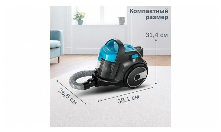 Пылесос Bosch для дома и сада BGS05X240 GS05 Cleann'n без мешка, компактный и легкий, бирюзовый, премиум-класса, 700 Вт, 1,5 литра, 78 децибел интересное:
