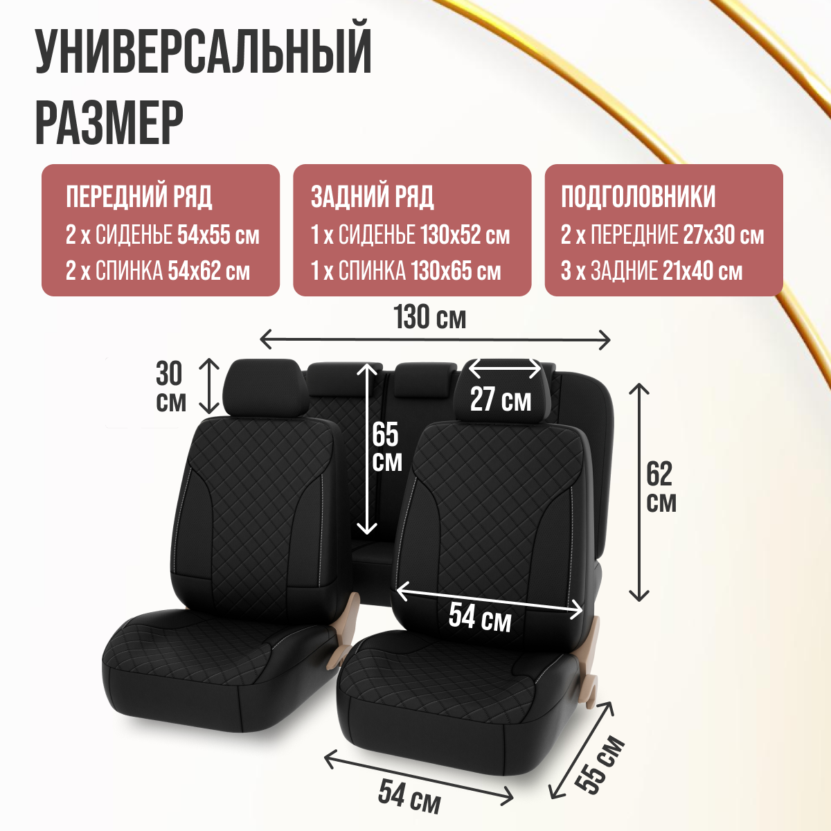 Чехлы универсальные в машину PSV King Next (Черный отстрочка белая), терморомб + экокожа