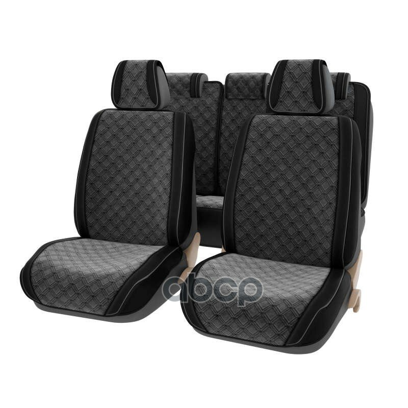 Комплект каркасных чехлов 5D CarFashion Consul Plus, чёрные, отстрочка серая