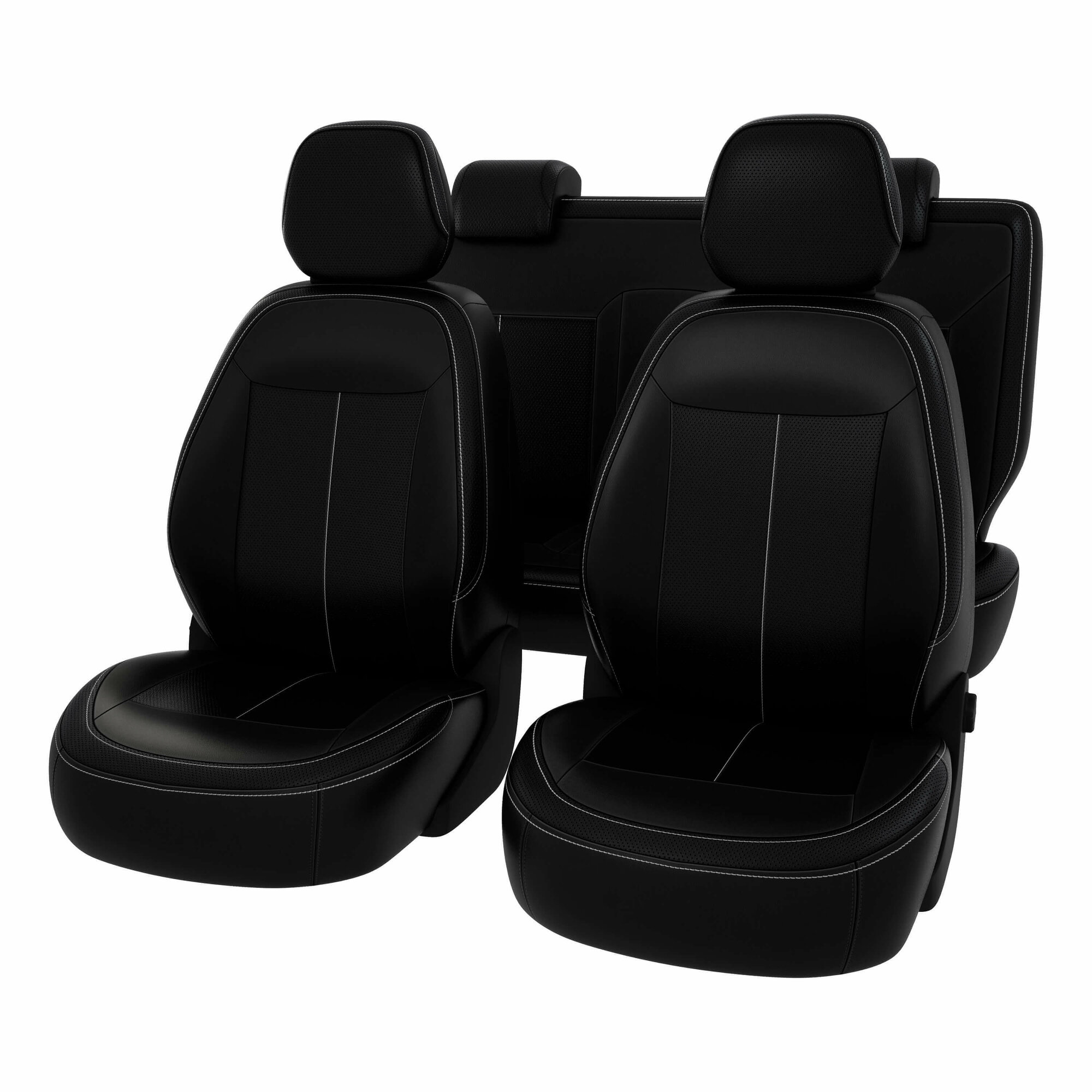 Комплект каркасных чехлов 5D CarFashion Consul Plus, чёрные, отстрочка серая