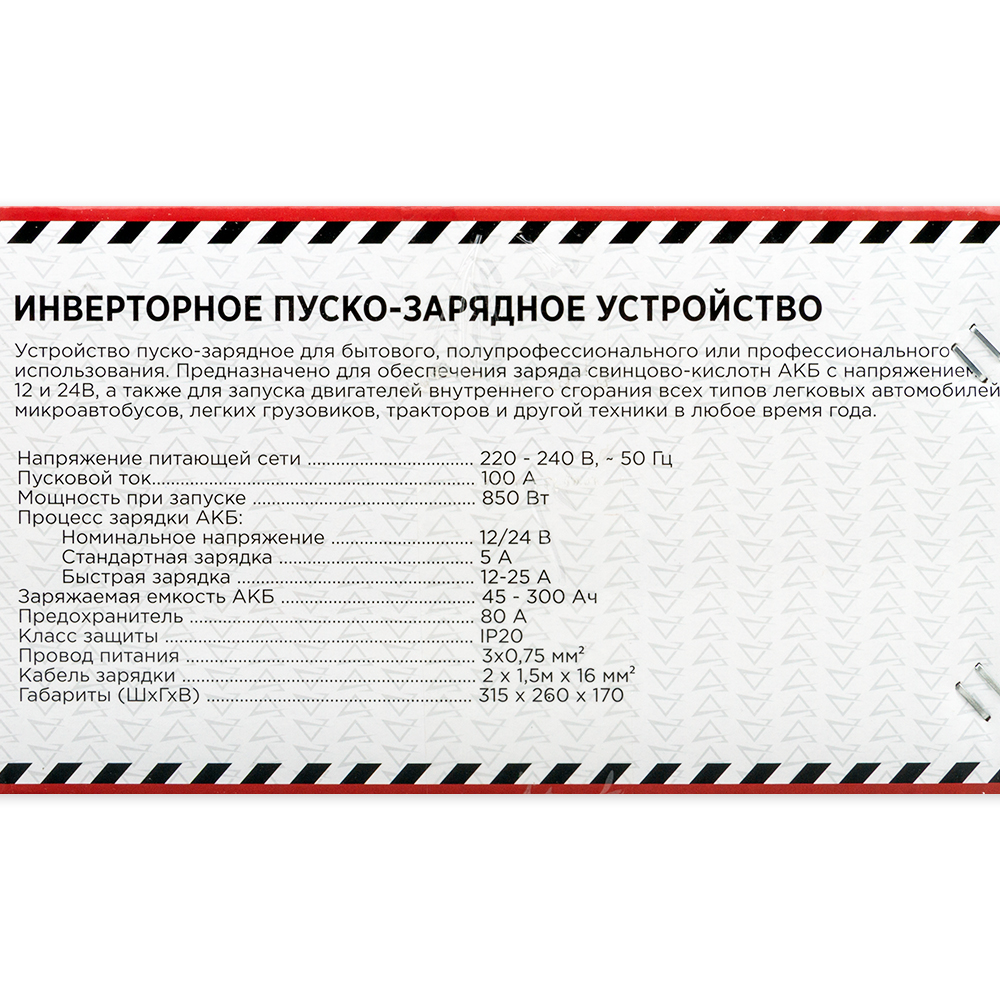Зарядно-пусковое устройство пзу-100а (12в/24в, 5-25а, акб 45-300ач, пуск 100а) arnezi r7990215