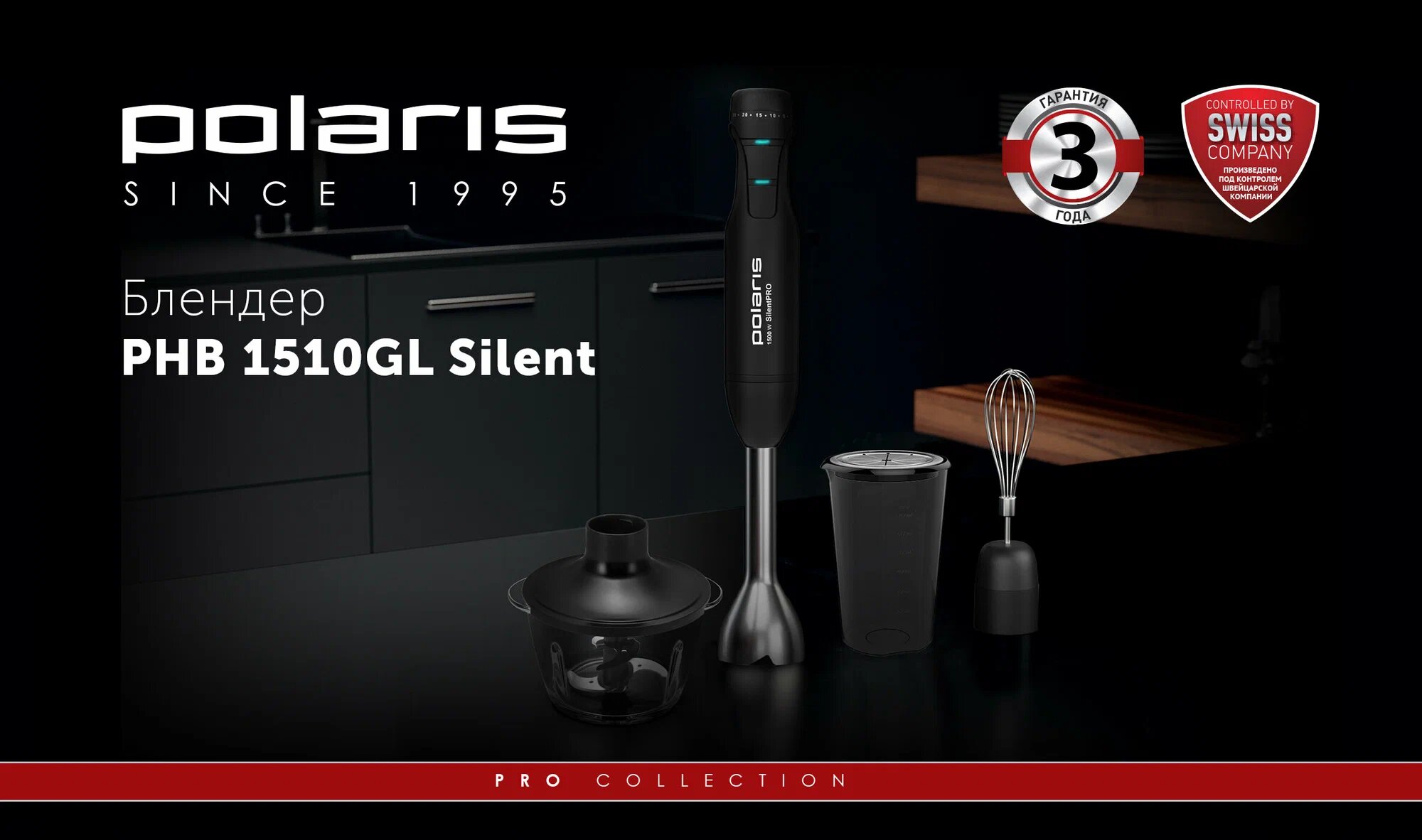 Погружной блендер Polaris PHB 0848 Brilliant Collection черный