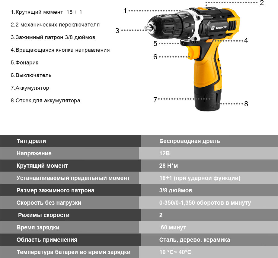 Дрель-шуруповерт Deko DKCD12FU-Li (063-4094) .