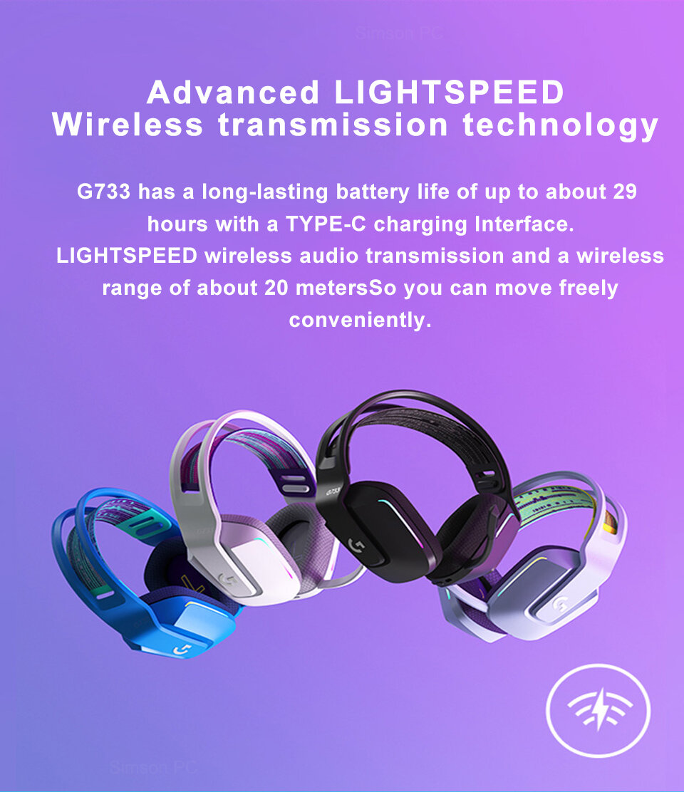 Logitech G733 Lightspeed Игровые наушники, сиреневый .