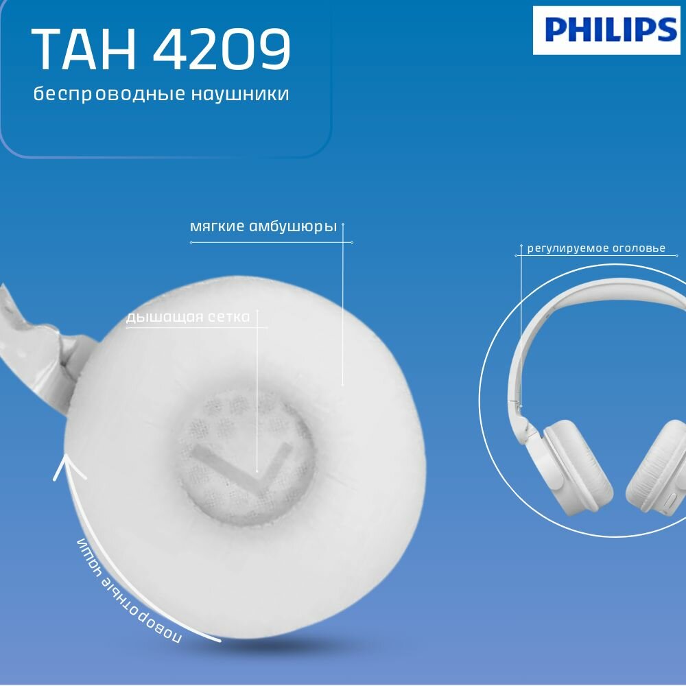 Ниже Вы можете прочитать отзывы на Беспроводные наушники Philips TAH4209, ознакомится с подробными характеристиками, посмотреть интересные обзоры и фотографии на Беспроводные наушники Philips TAH4209.