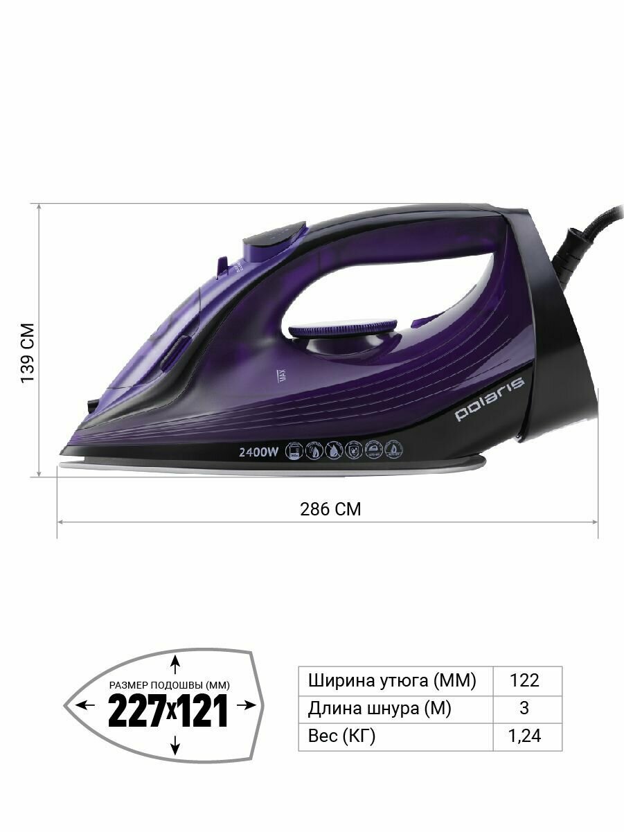 Утюг Polaris PIR 2487AK 3M, 2400 Вт, подошва керамическая, фиолетовый