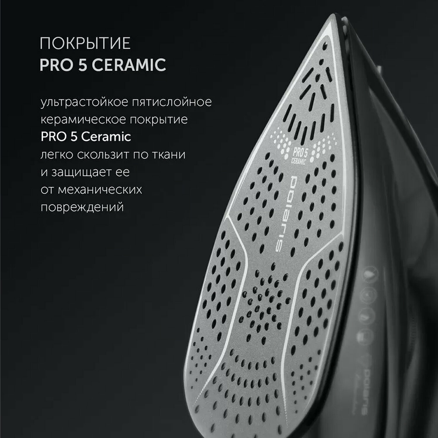 Утюг Polaris PIR 2430K с керамической подошвой, черный, 2.4 кВт