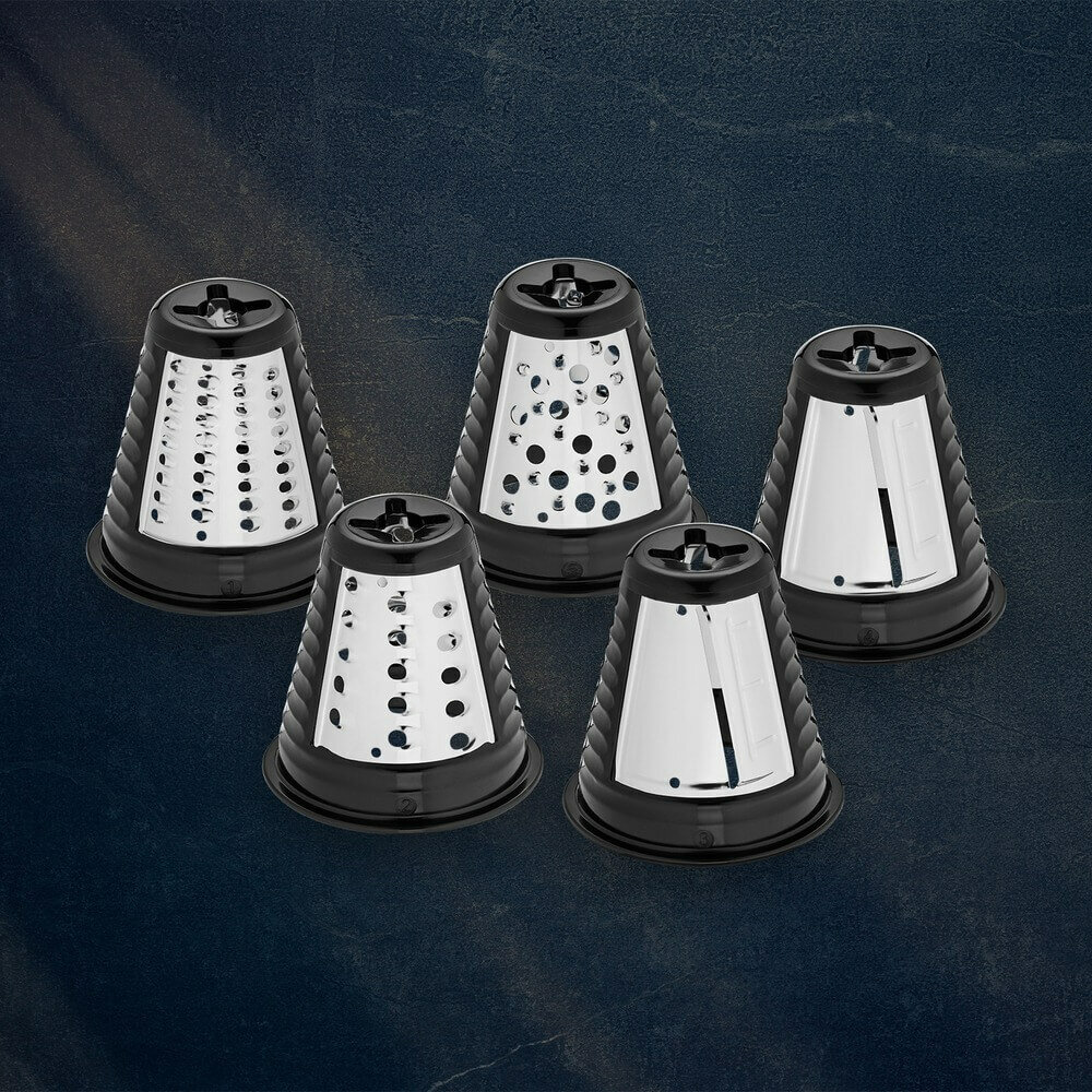 | Насадки | терка, насадка для нарезки ломтиками, общее число насадок: 5 |