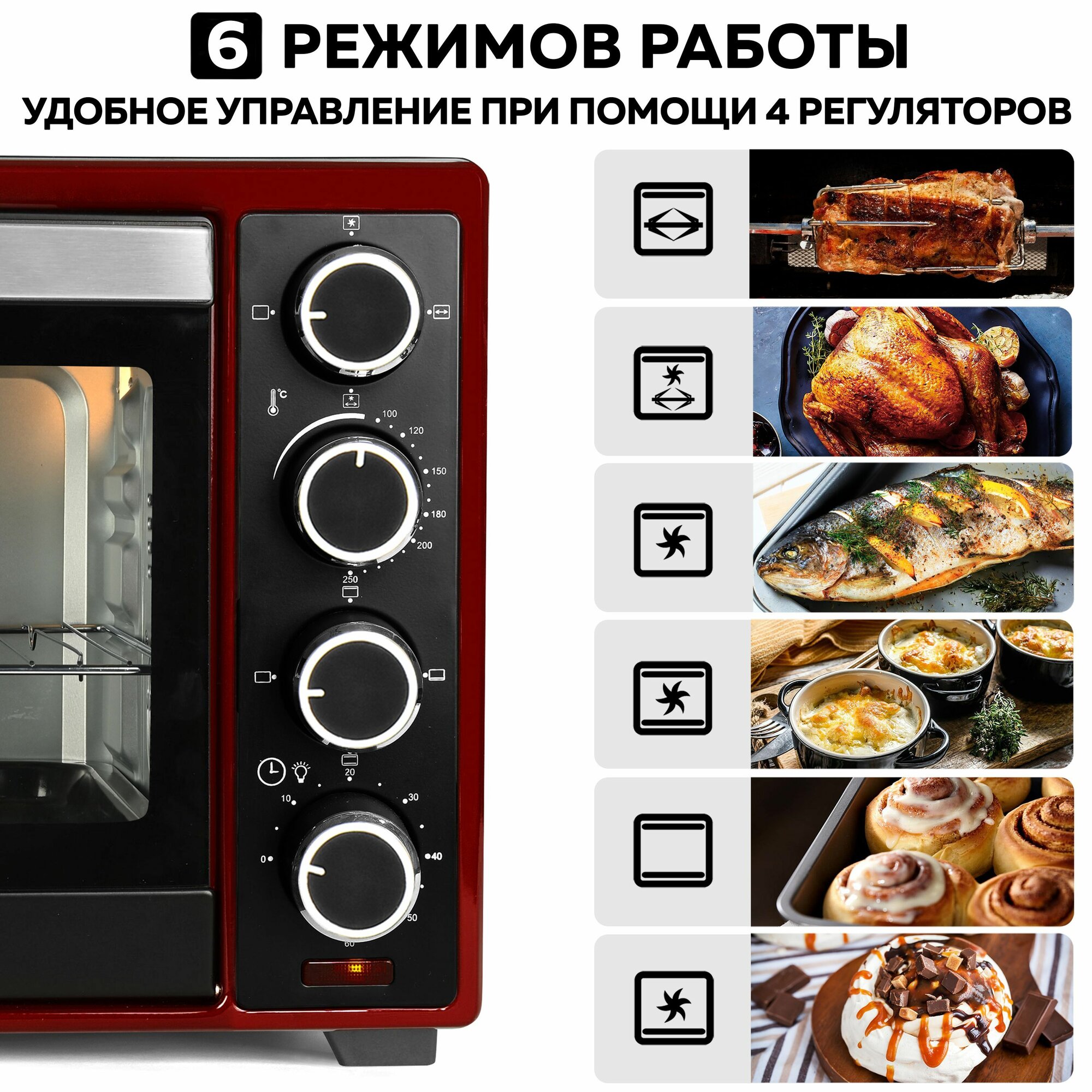 Мини-печь GFGRIL GFO-48BR, 6 режимов работы, цвет черный, красный, 2000 Вт интересное: