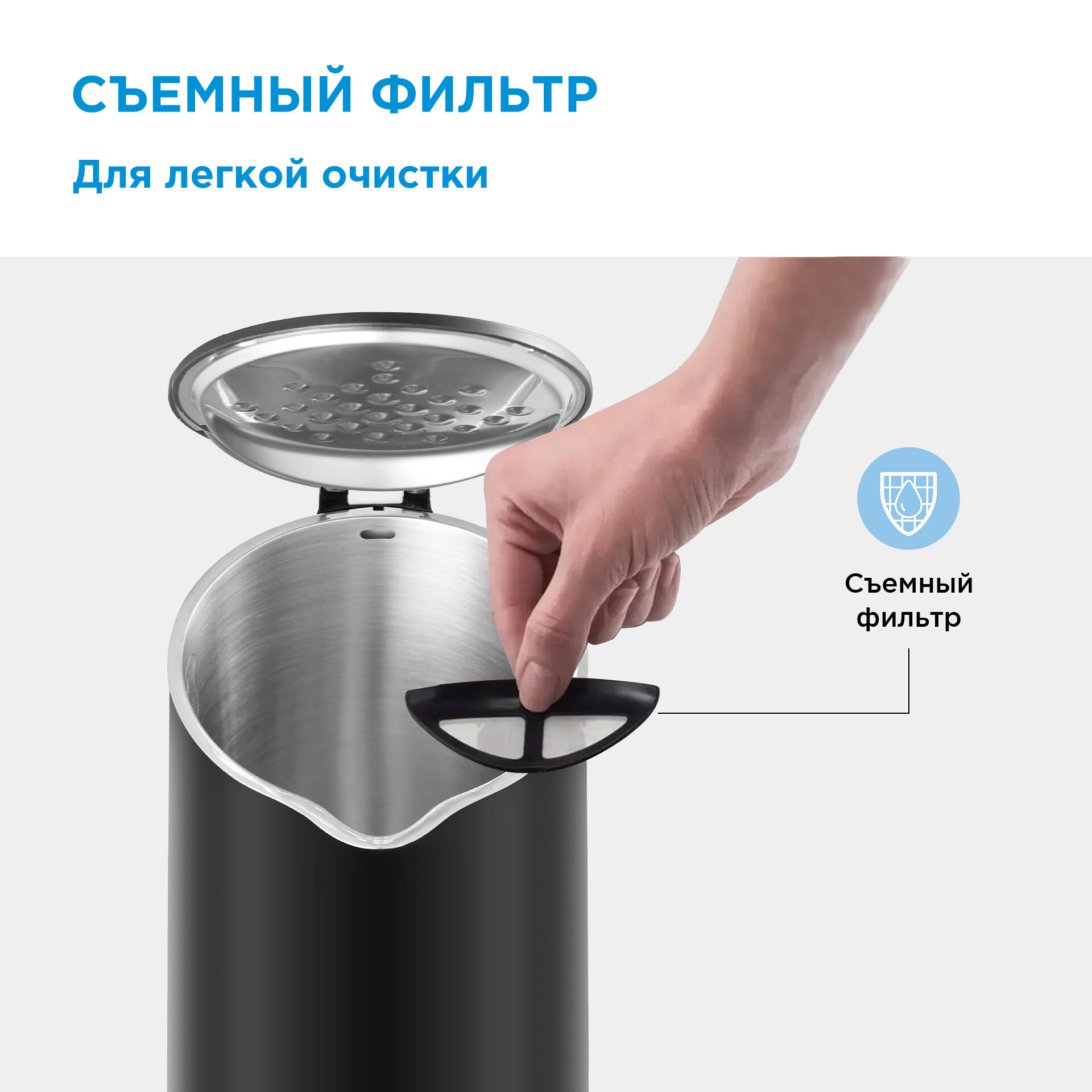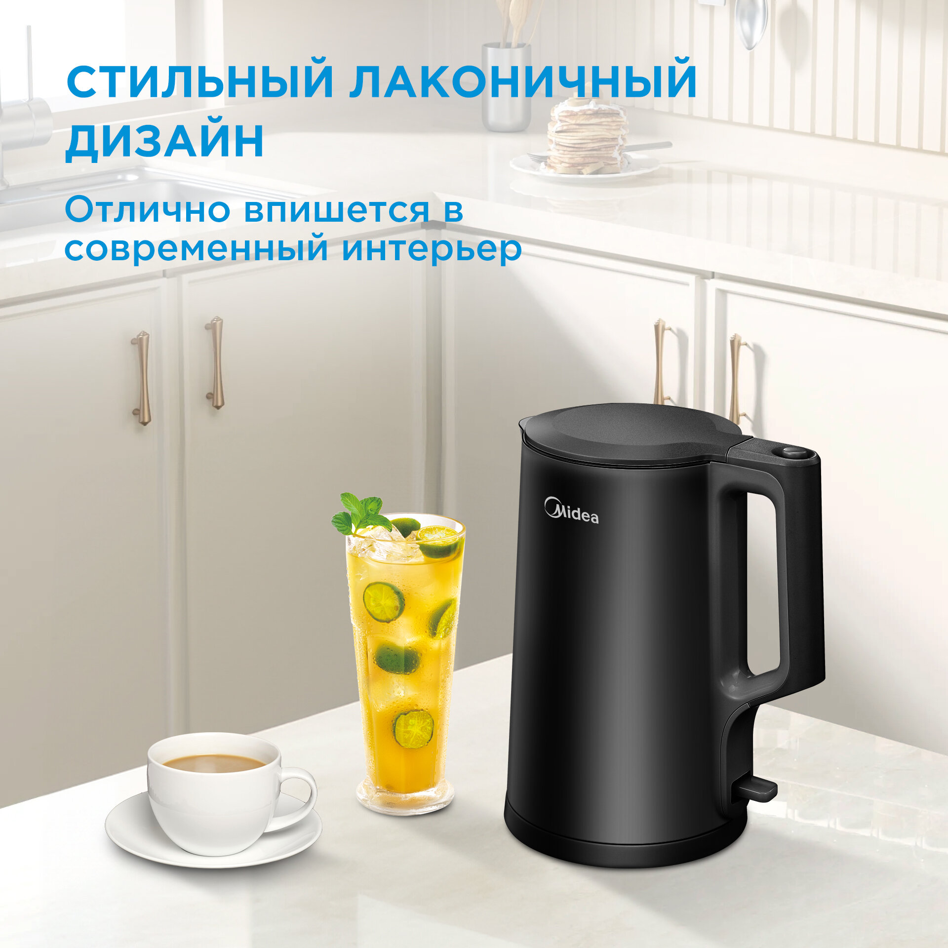Чайник электрический Midea MK-8065, 1.7 л, 2200 Вт, двойные стенки, съемный фильтр, Strix, черный интересное: