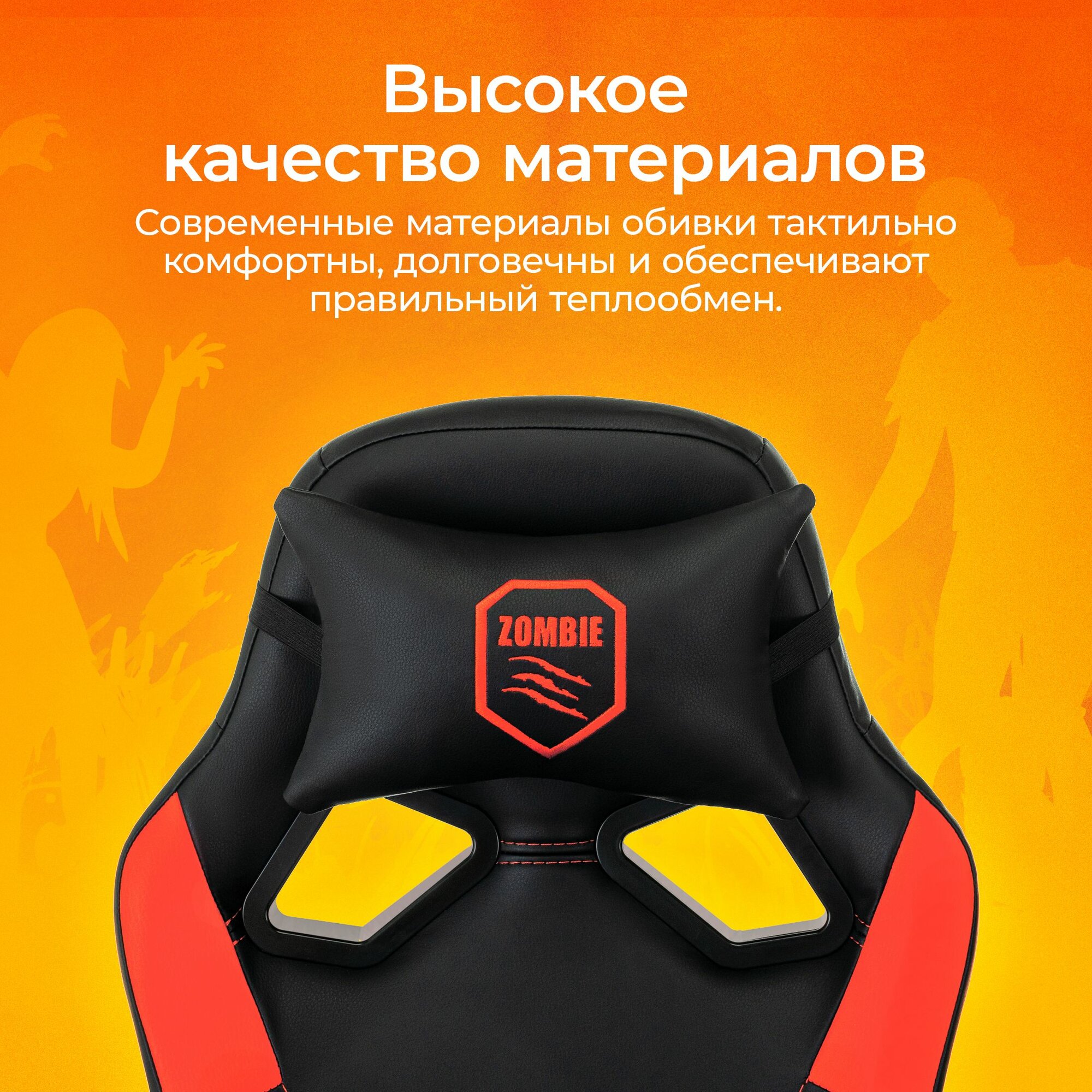 Кресло игровое компьютерное ZOMBIE RUNNER RED черный/красный, текстиль/эко.кожа, крестовина пластик