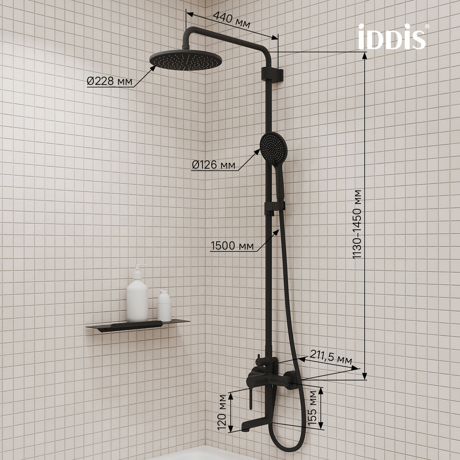| Высота стойки для душа | 255 мм |