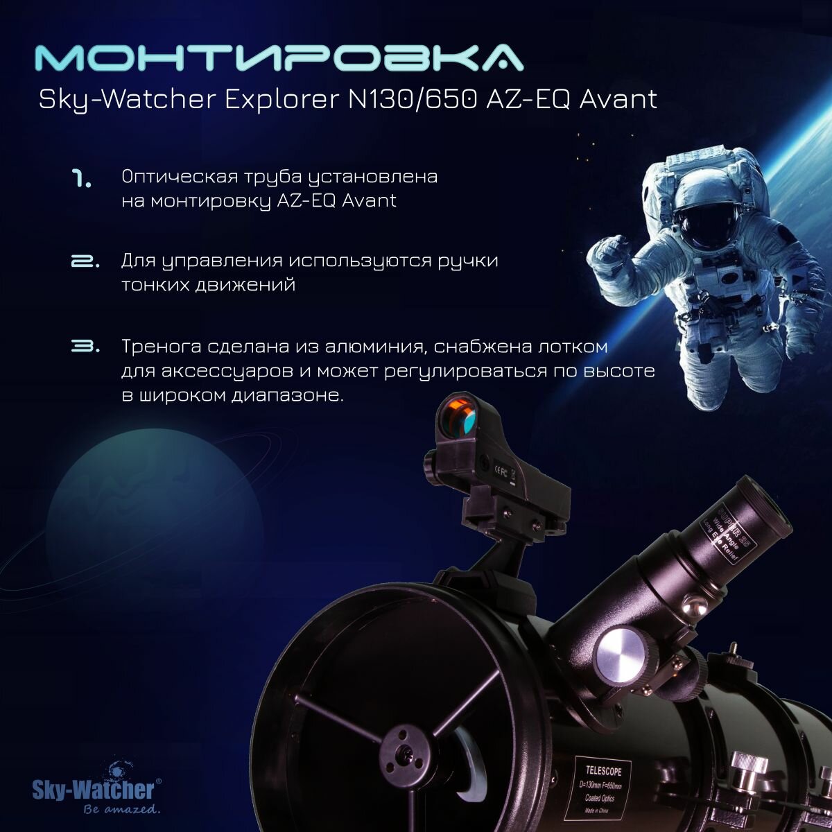 Телескоп Sky-Watcher Explorer N130/650 Az-Eq Avant 76341 Sky-Watcher интересное: