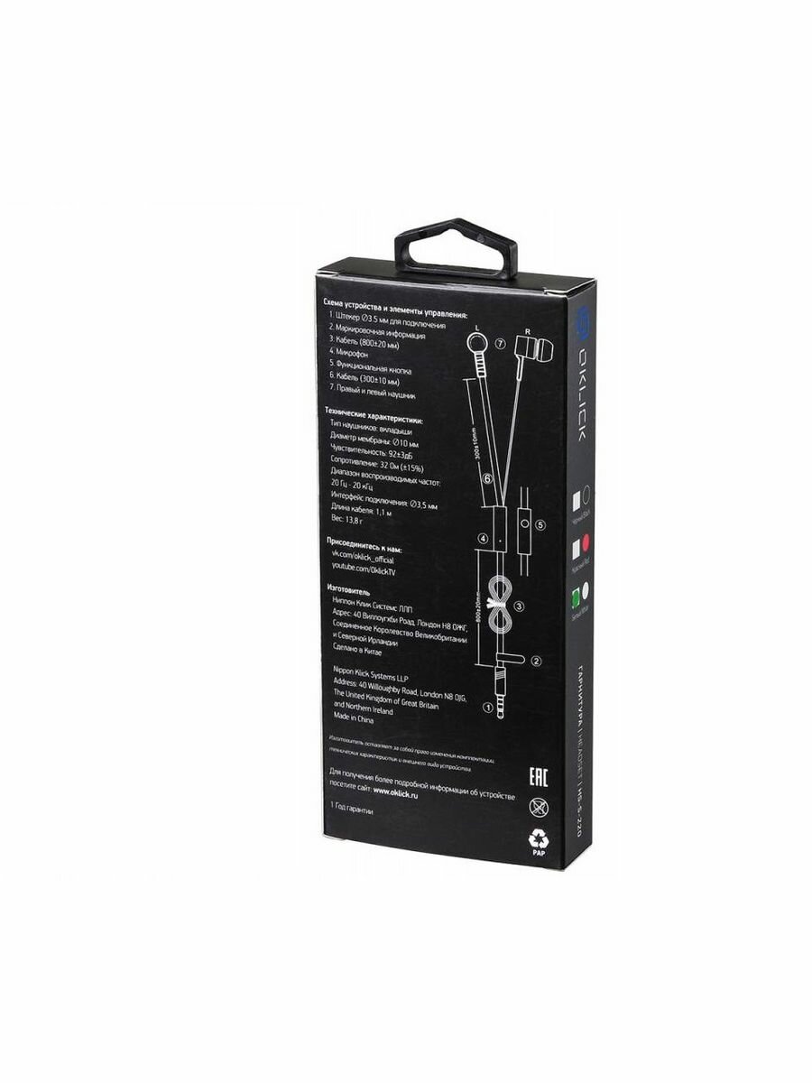Наушники Oklick HS-S-220, 3.5 мм, вкладыши, черный [d2b]