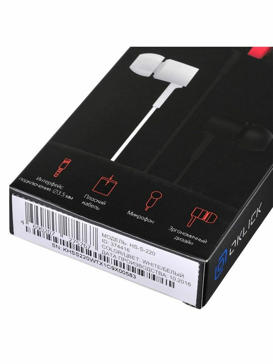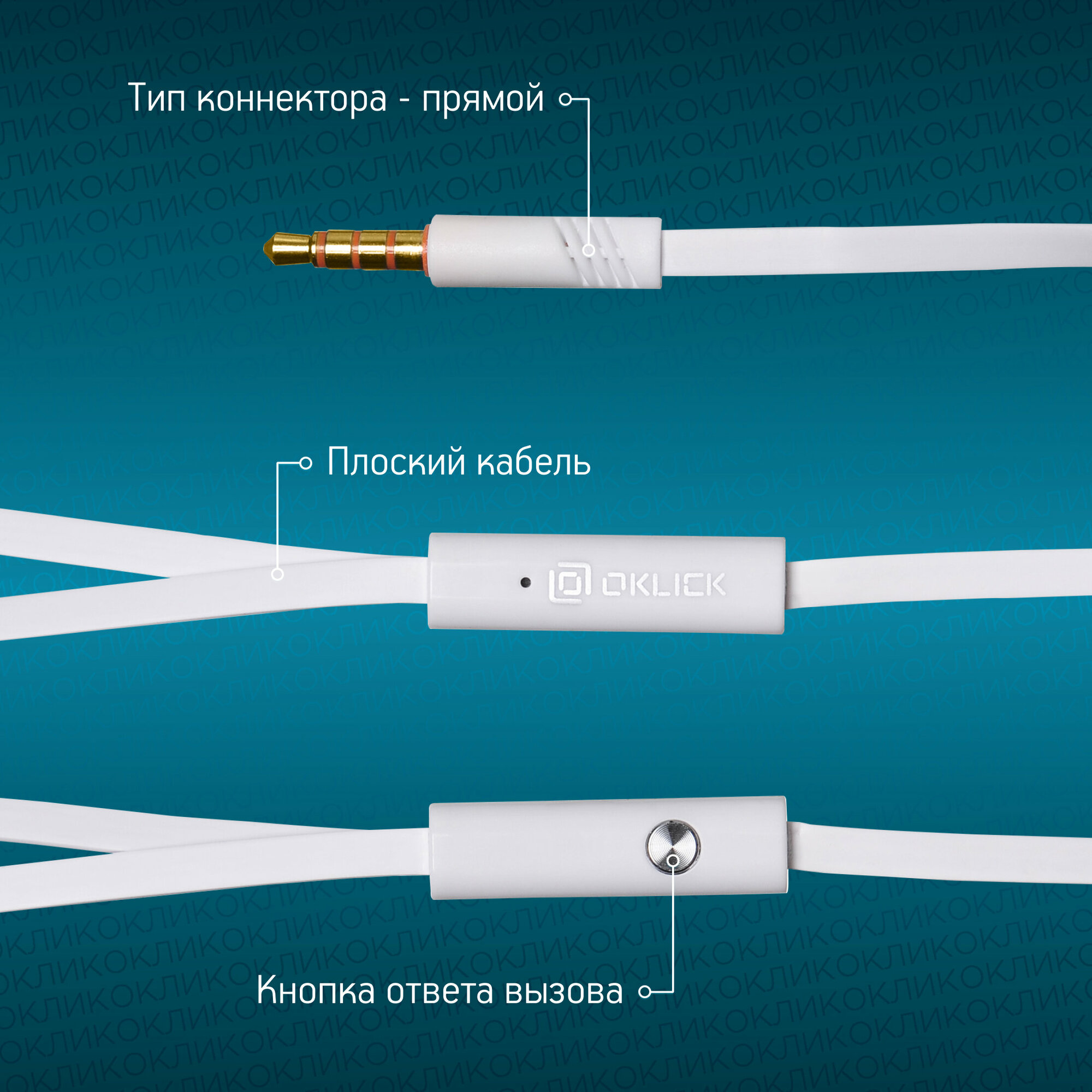 Гарнитура вкладыши OKLICK HS-S-220 1.1 м белый, проводные, в ушной раковине (D2)
