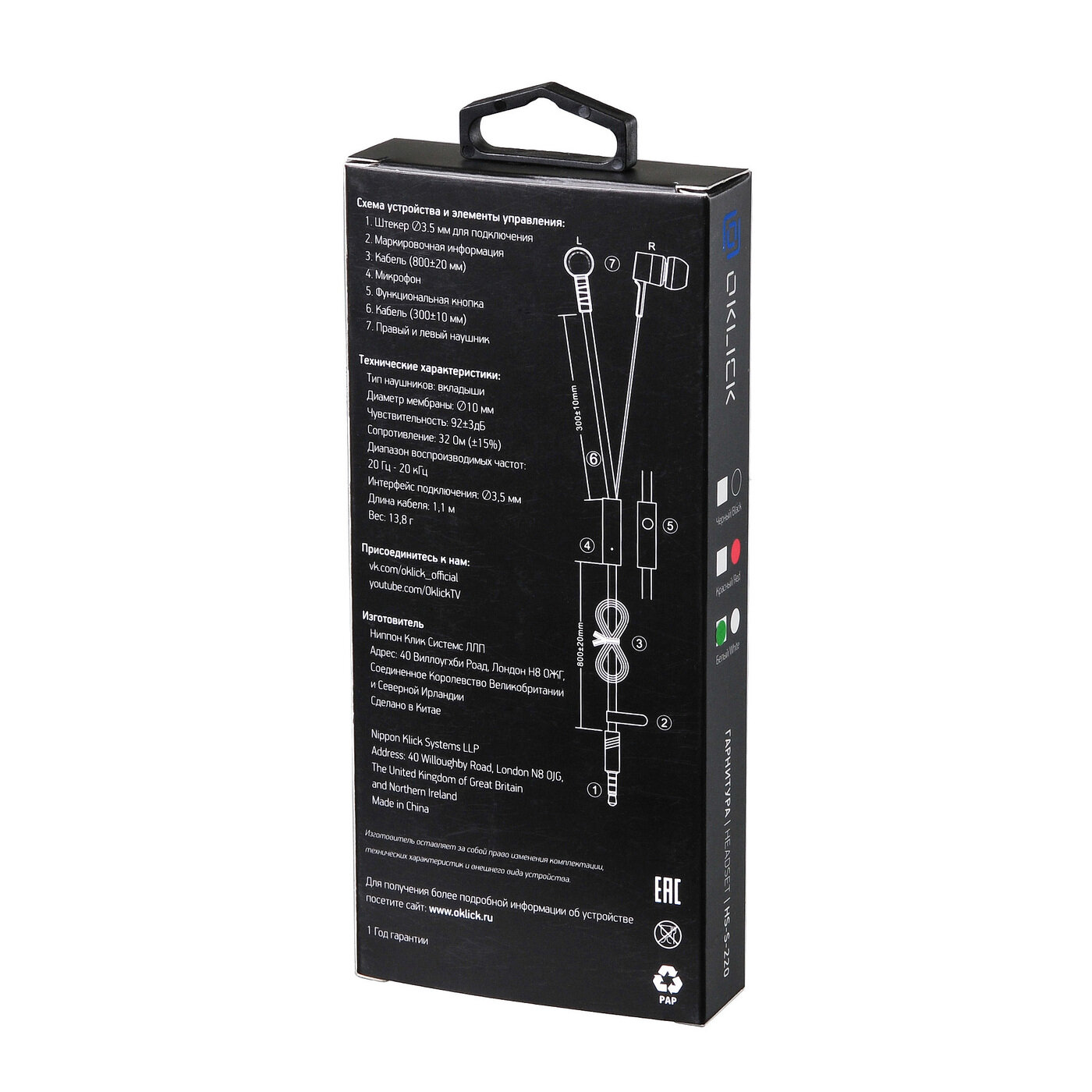 Гарнитура вкладыши Oklick HS-S-220 черный .