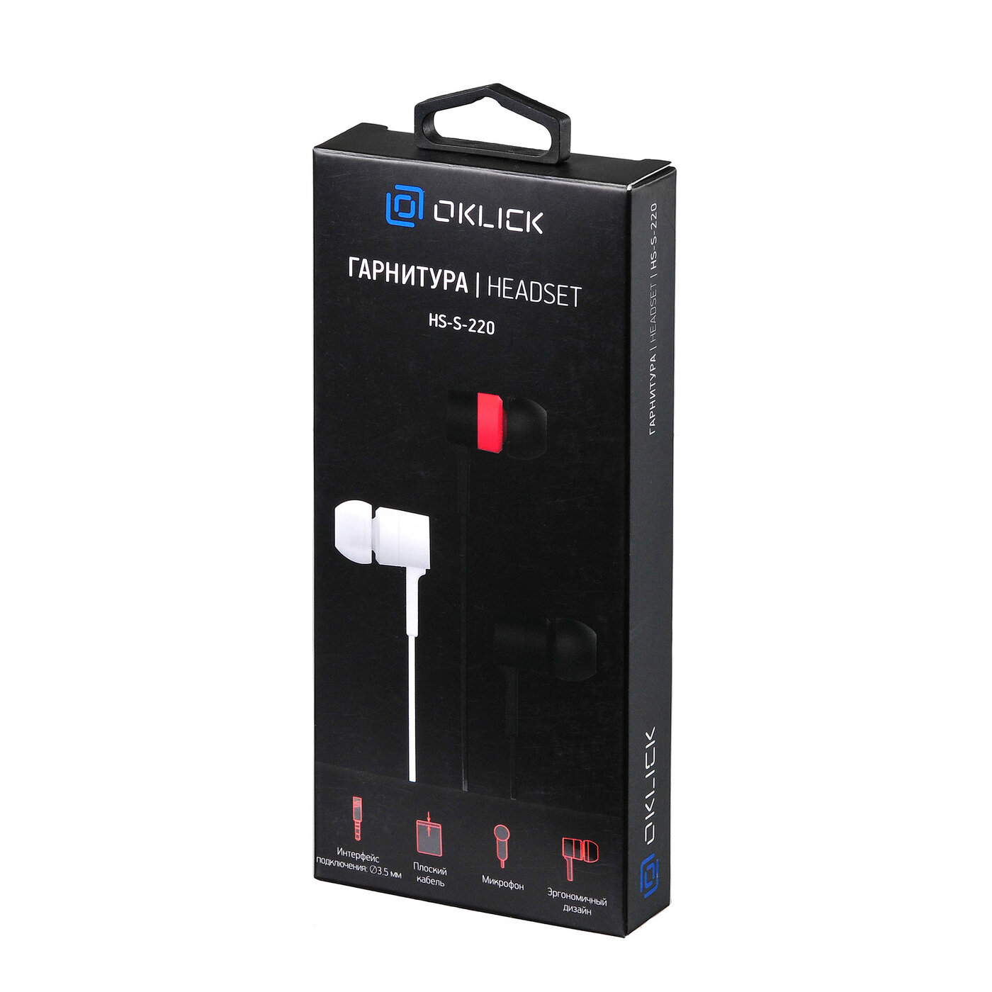 Гарнитура Oklick HS-S-220, 3.5 мм, вкладыши, черный/красный [d2b/r]
