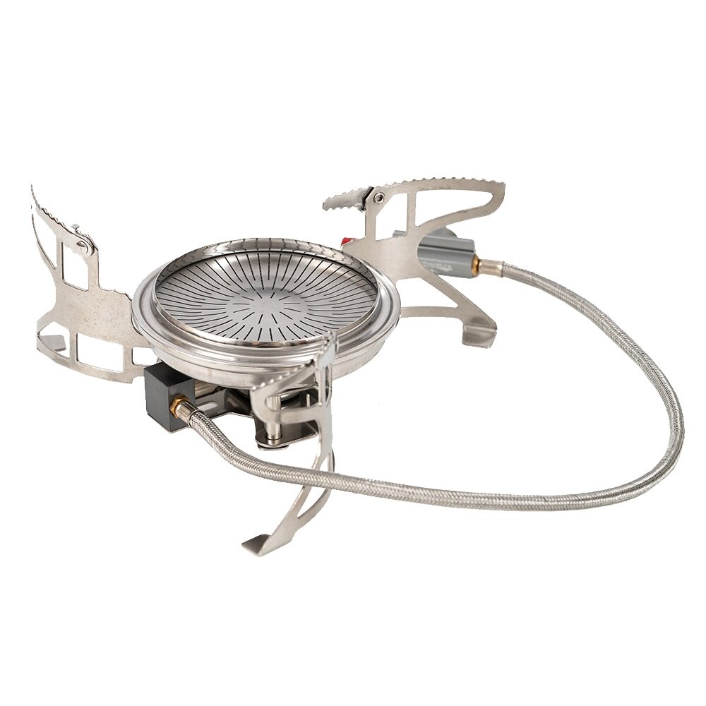 Туристическая газовая горелка с пьезоподжигом с подогревом газа газогенератором, горелка перевертыш