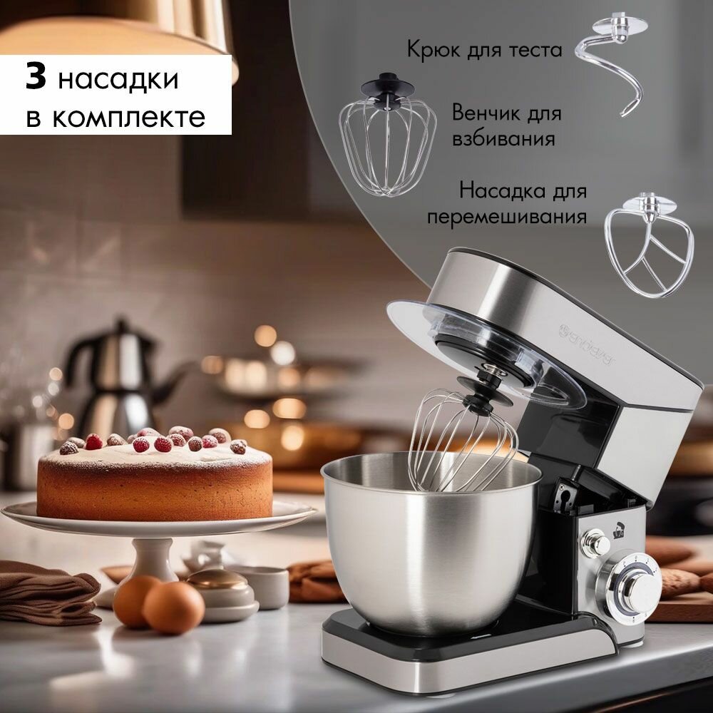 СохранитьПланетарный миксер Endever Sigma-17, 1100 Вт, 4л, серебристый, защита от перегрева и брызг интересное: