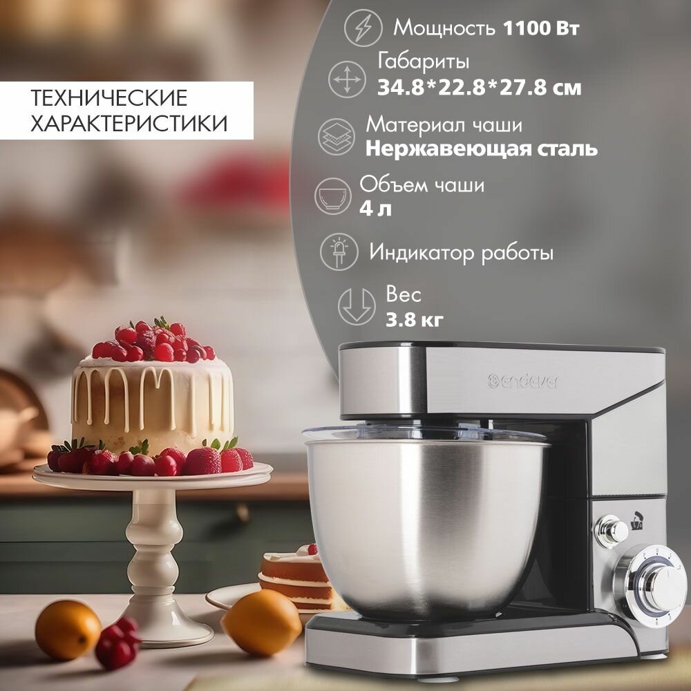 Купить Планетарный миксер Endever Sigma-17, 1100 Вт, 4л, серебристый, защита от перегрева и брызг