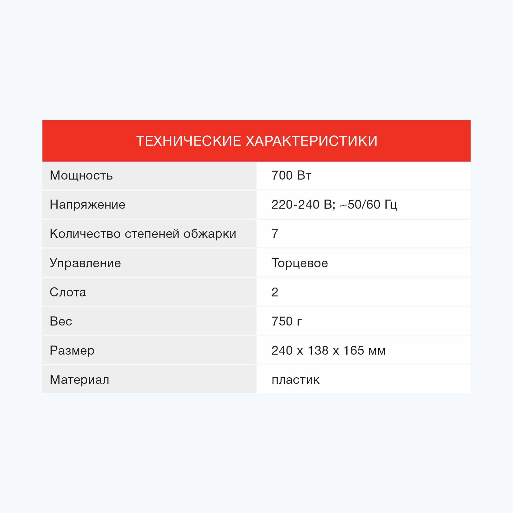 | Количество тостов | 2 |