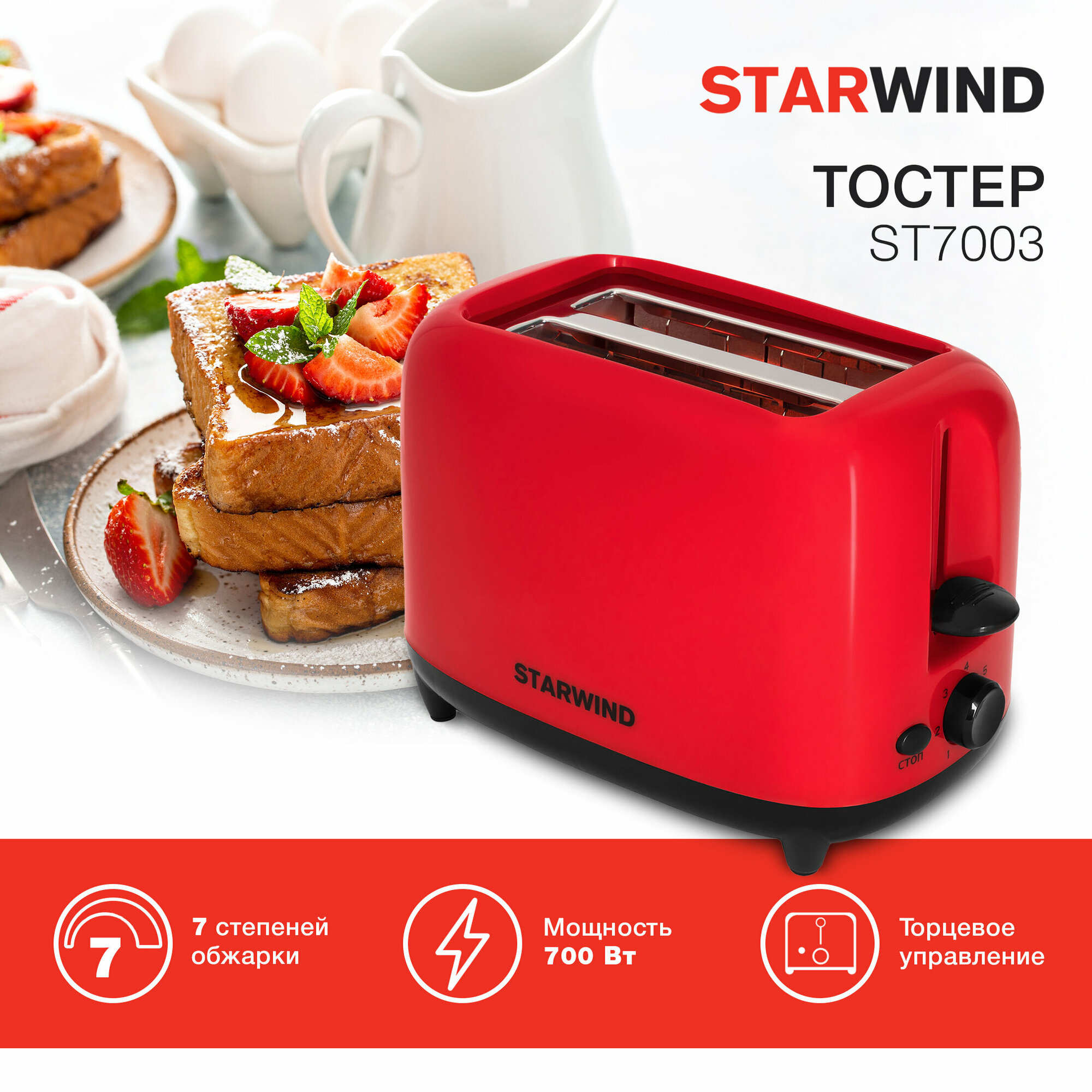 Тостер Starwind ST7003 750Вт красный/черный интересное: