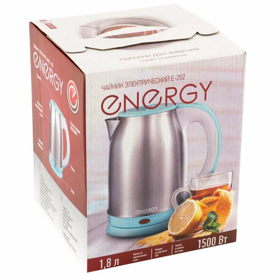 Energy Чайник электрический ENERGY E-202, металл, 1,8 л, 1500 Вт, серебристо-голубой