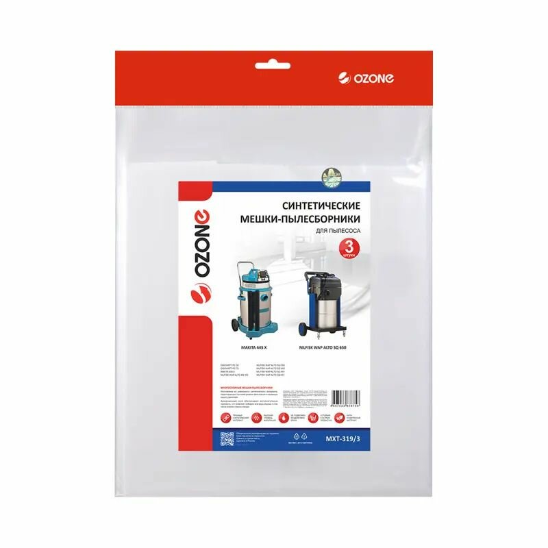 Мешки-пылесборники Ozone синтетические 3 шт для GISOWATT, MAKITA, NILFISK