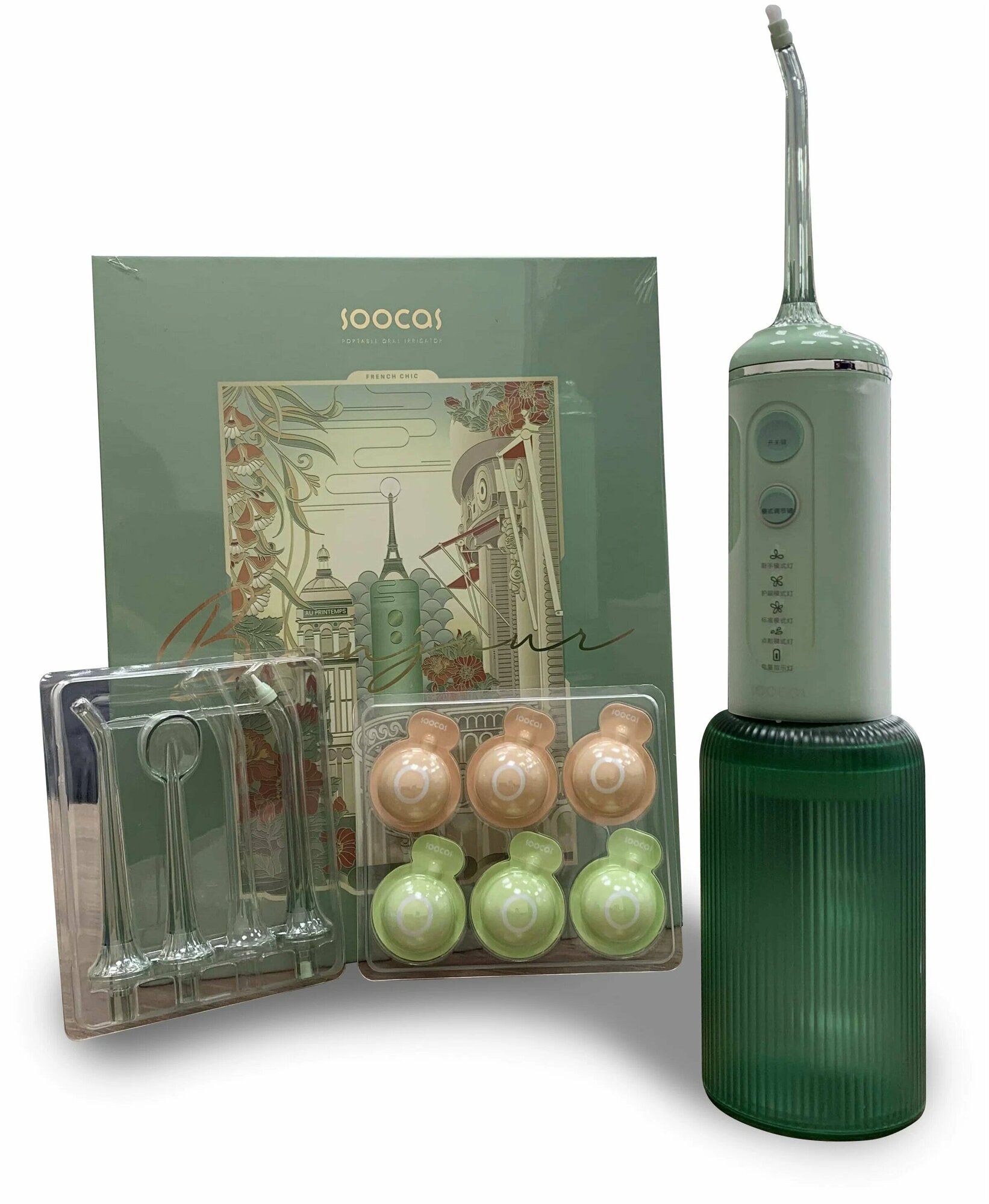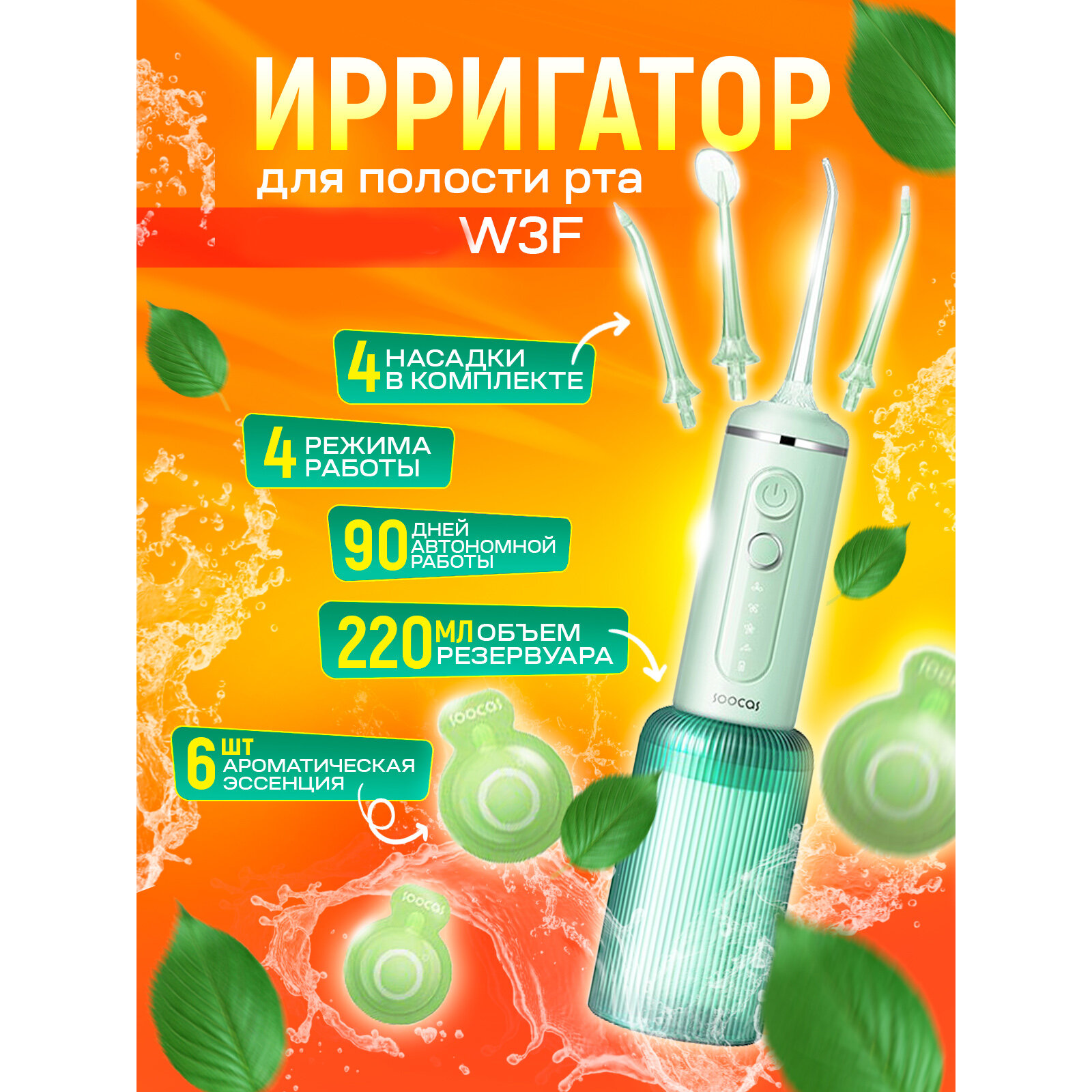 Купить Ирригатор полости рта Xiaomi Soocas W3F 4 насадки, зеленый
