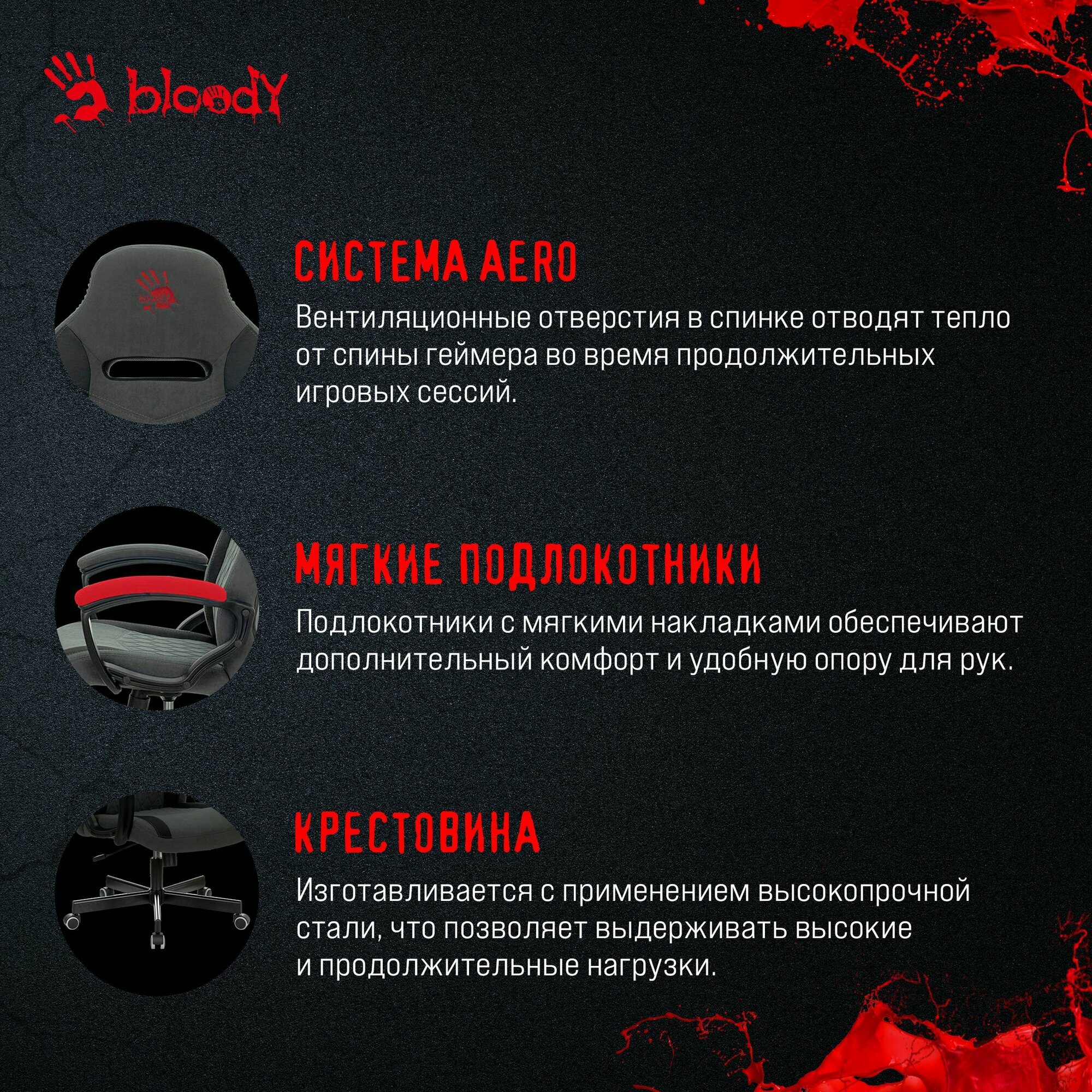 Кресло игровое A4 BLOODY GC-110 серый крестовина металл