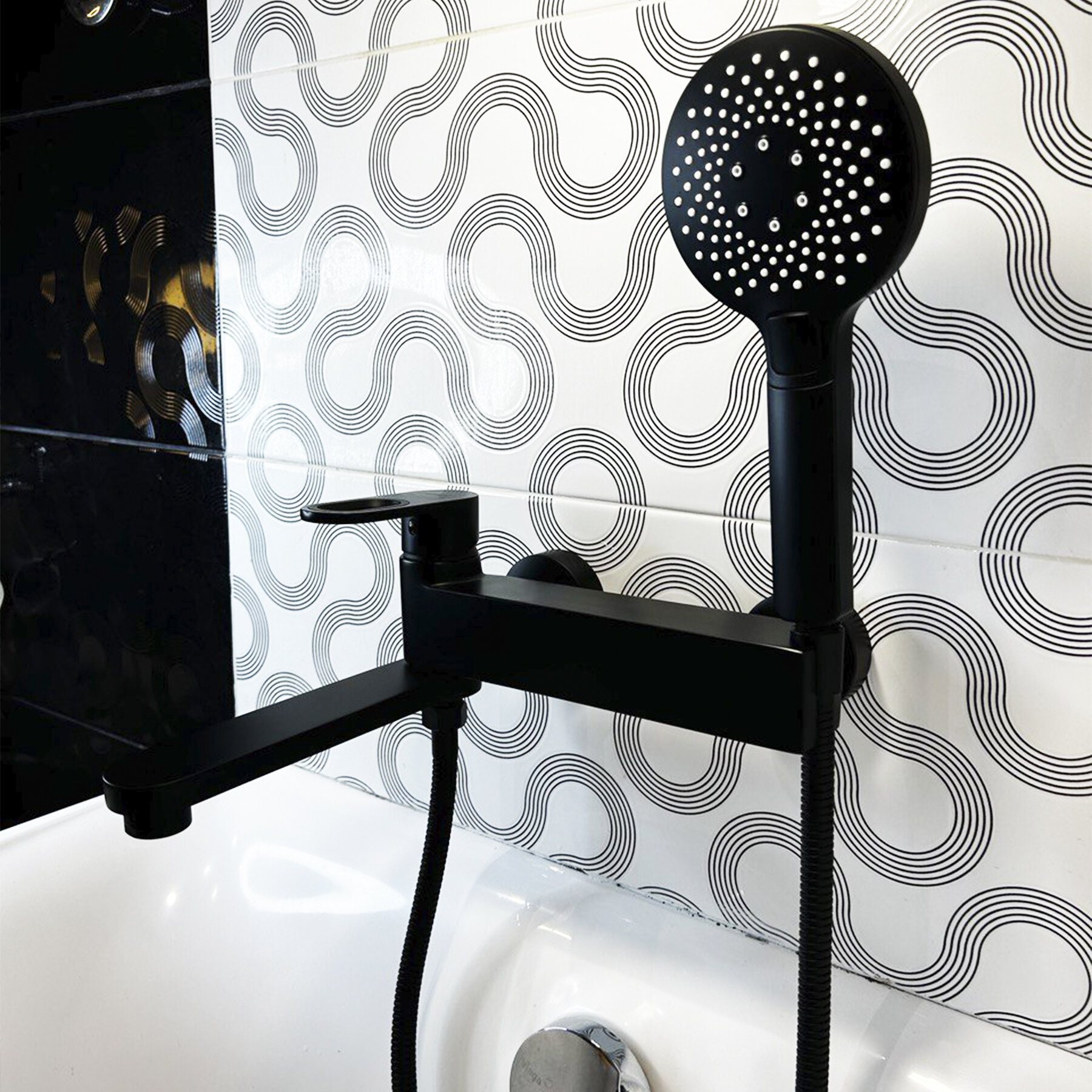 Смеситель для кухни с гибким изливом, хромированный/чёрный