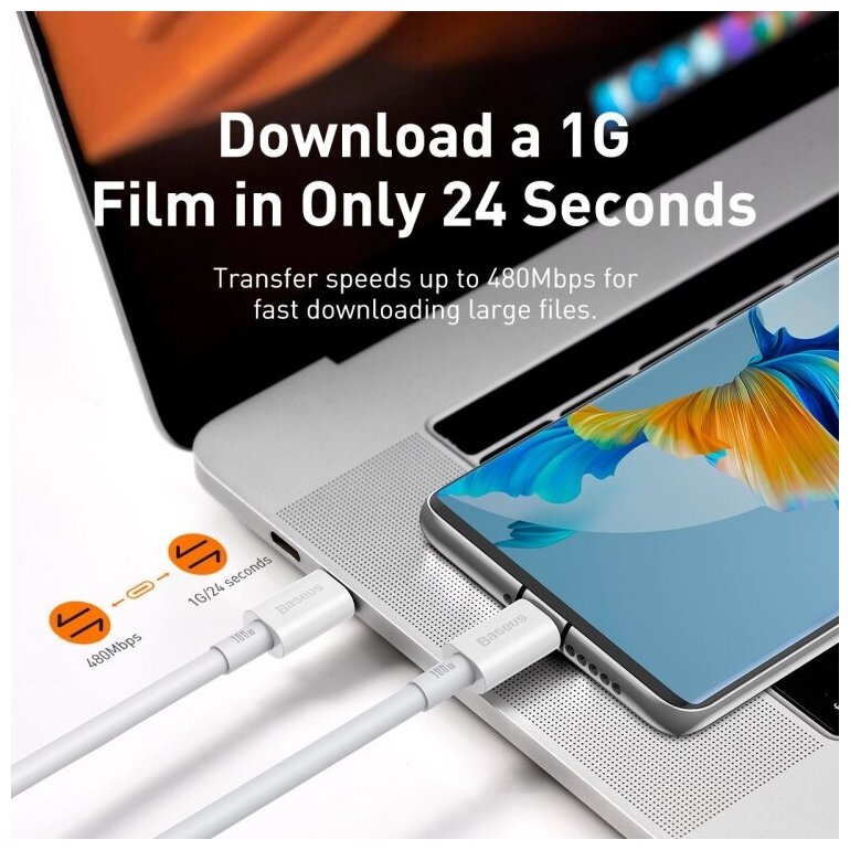 Кабель Type-C-Type-C Baseus Superior 100W White 1m 5А