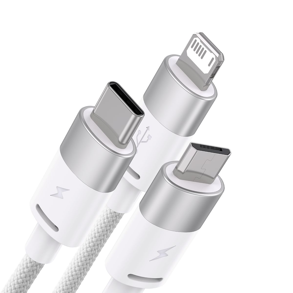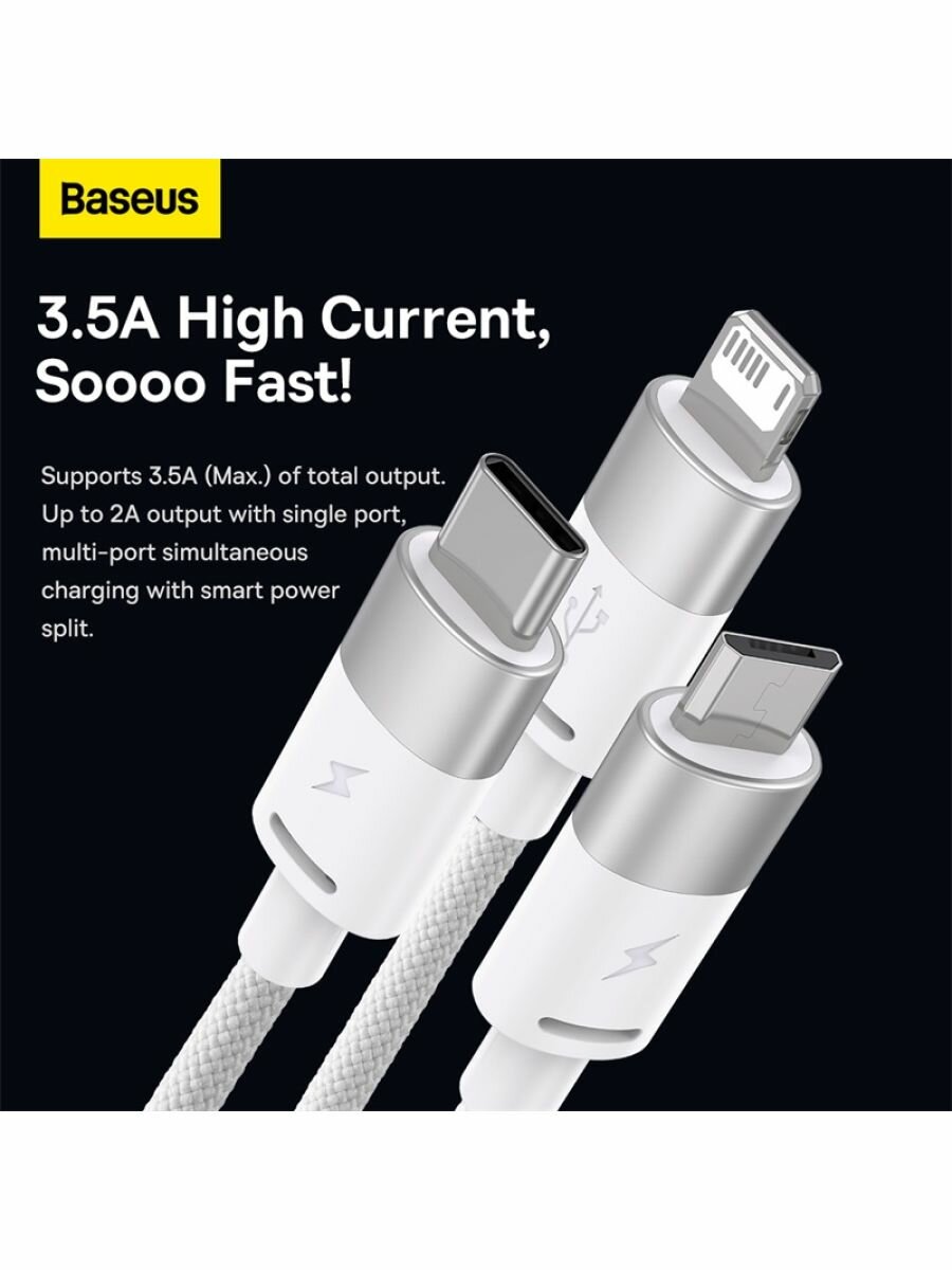 Универсальный Кабель BASEUS StarSpeed One-for-three Fast Charging Data Cable , USB - MicroUSB+Type-C+Lightning, 3.5A, 1.2 м, Белый