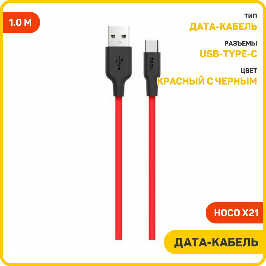 Кабель Hoco X21 Silicone USB - USB Type-C, 1 м, красный/черный