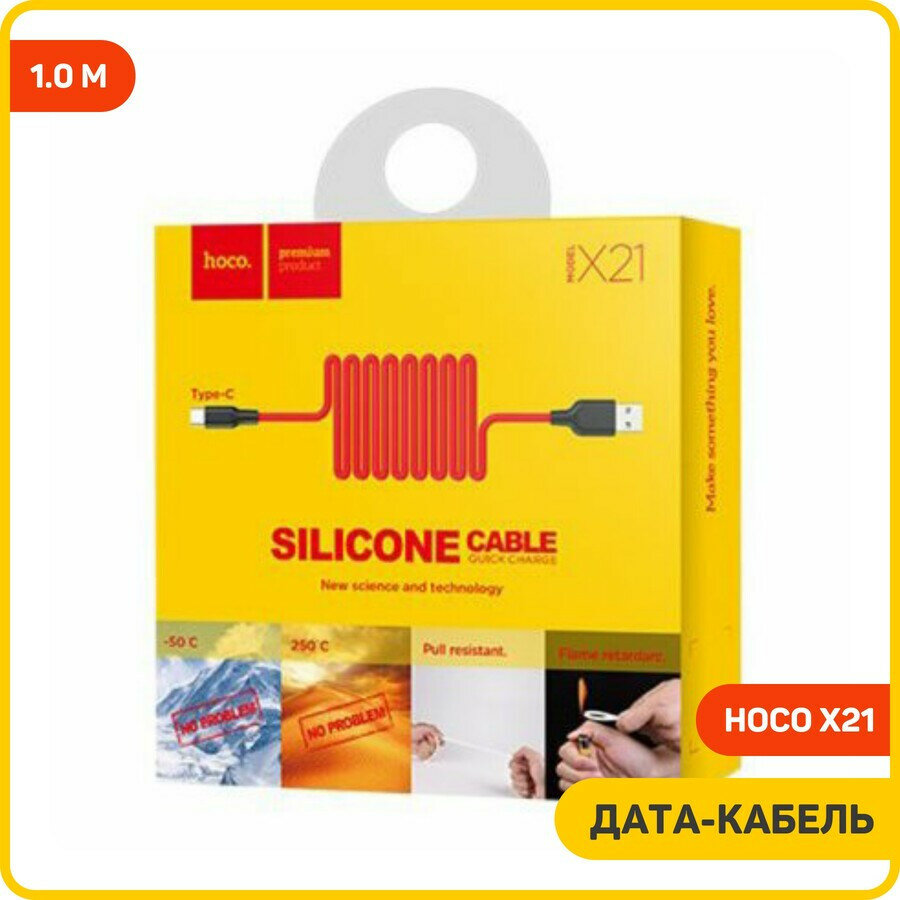 Кабель USB HOCO X21 Silicone, USB - Type-C, 2А, 1 м, черный+красный