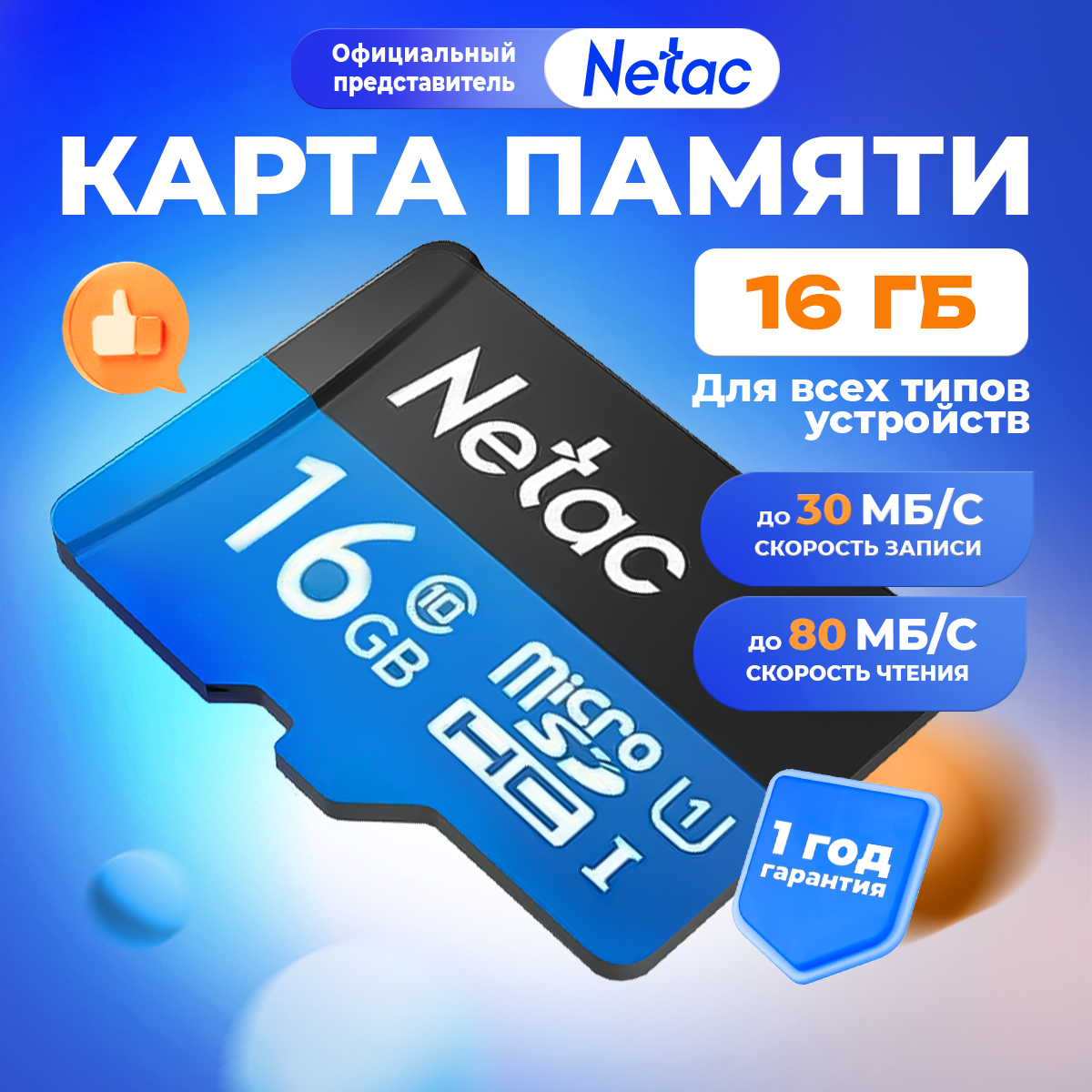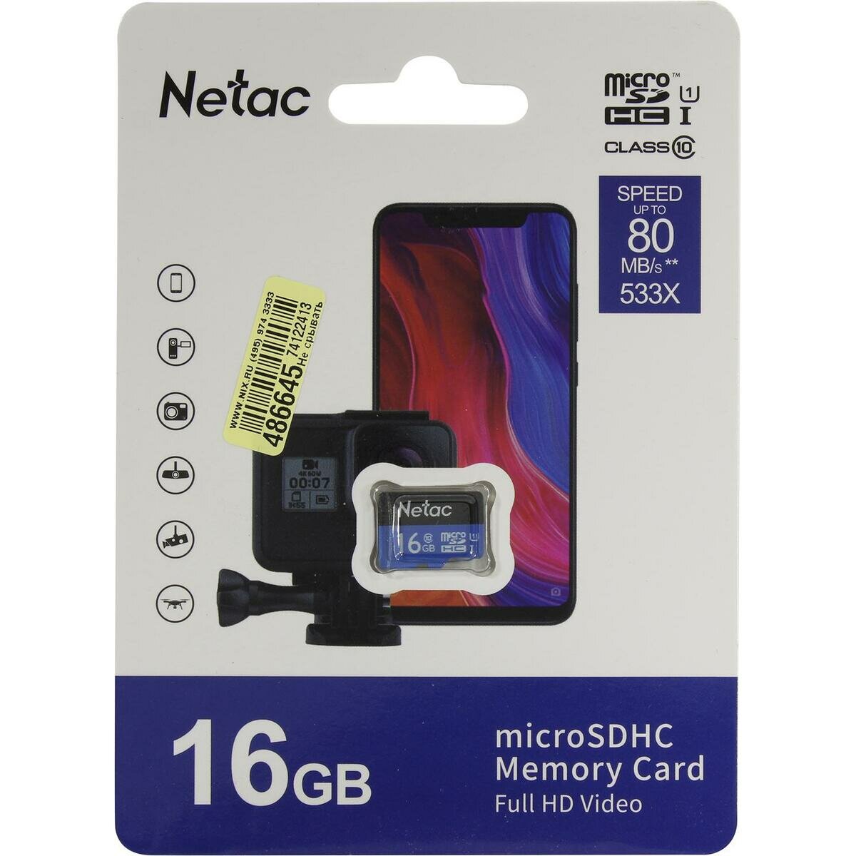 Карта памяти microSDHC UHS-I U1 NETAC P500 16 ГБ, 80 МБ/с, Class 10, NT02P500STN-016G-R, 1 шт., пер