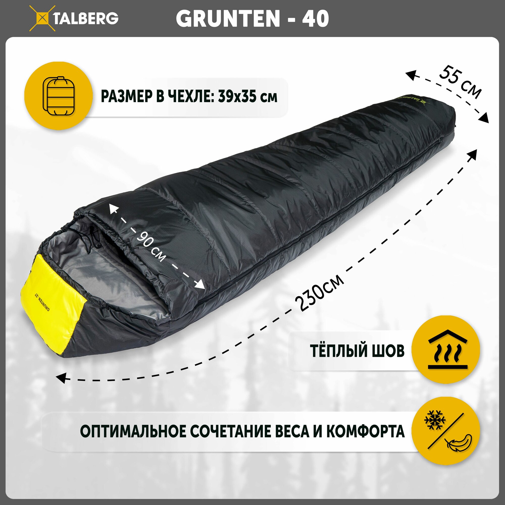 Спальный мешок туристический кокон Talberg GRUNTEN -40C спальный мешок, -40С, левый интересное: